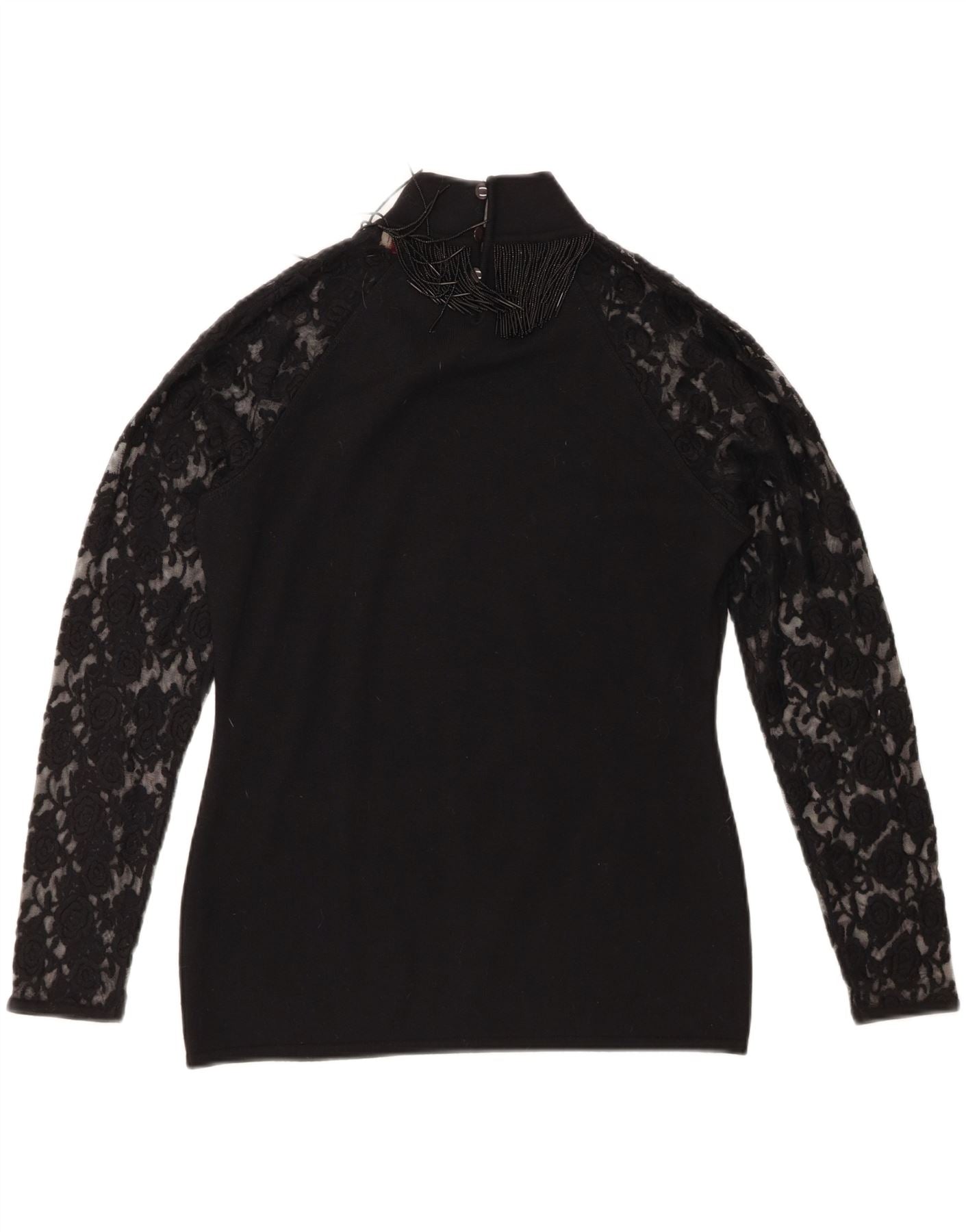 Roccobarocco Top da donna a maniche lunghe UK 14 Medium Black Lana Merino