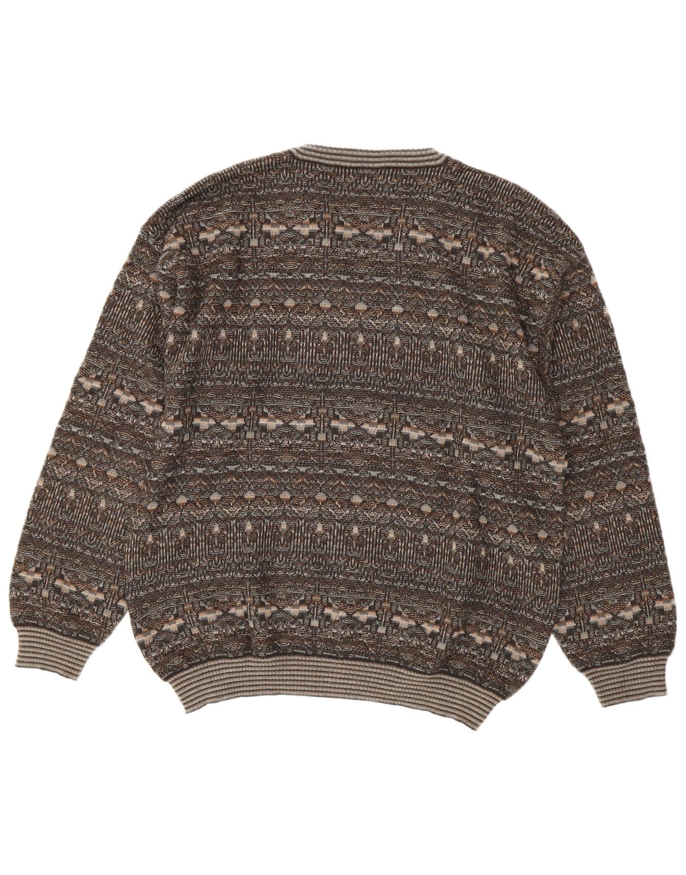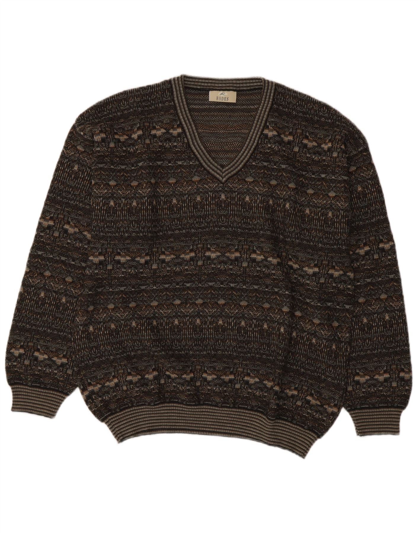 RODES Maglione da uomo con scollo a V grande lana vergine Fair Isle grigia