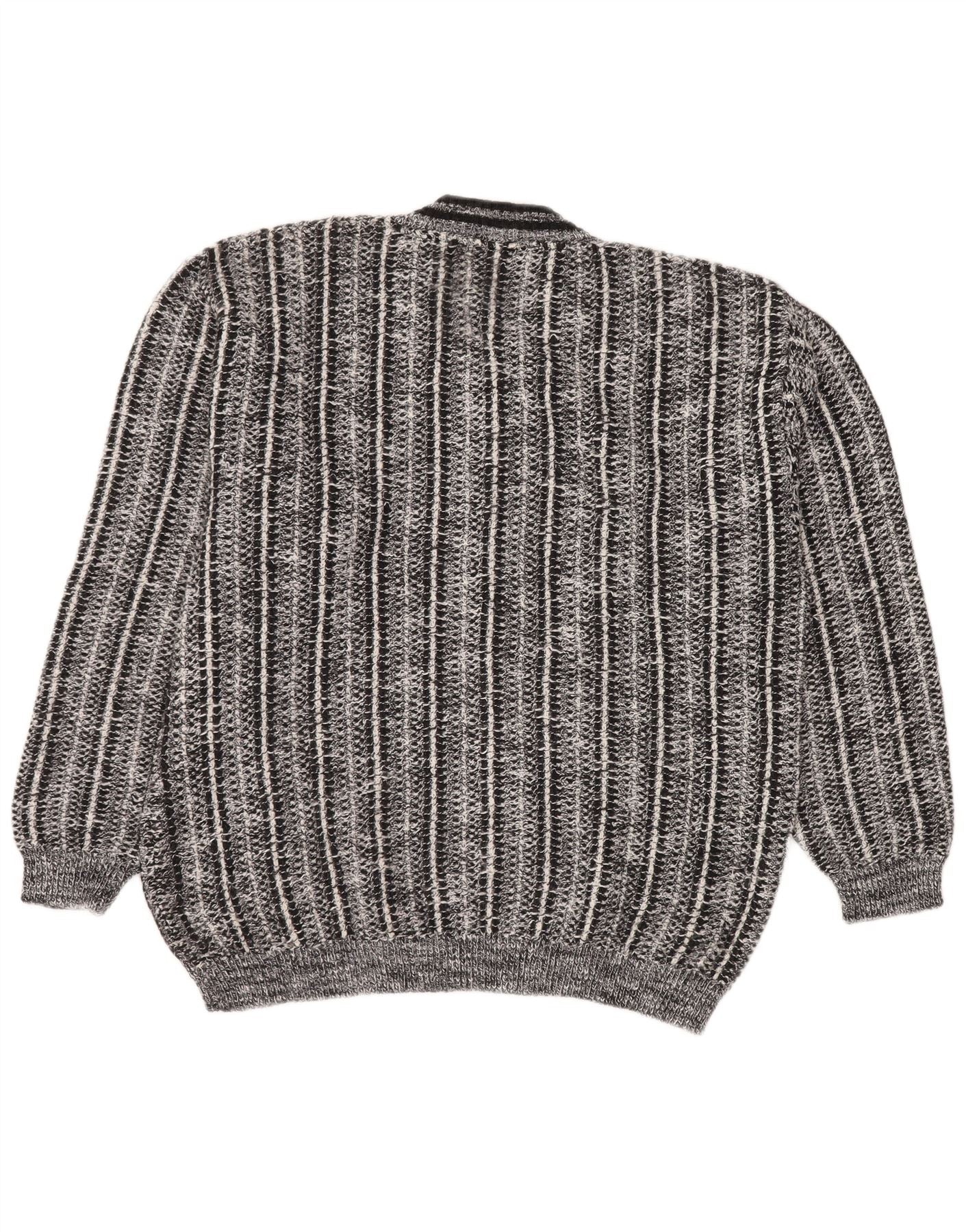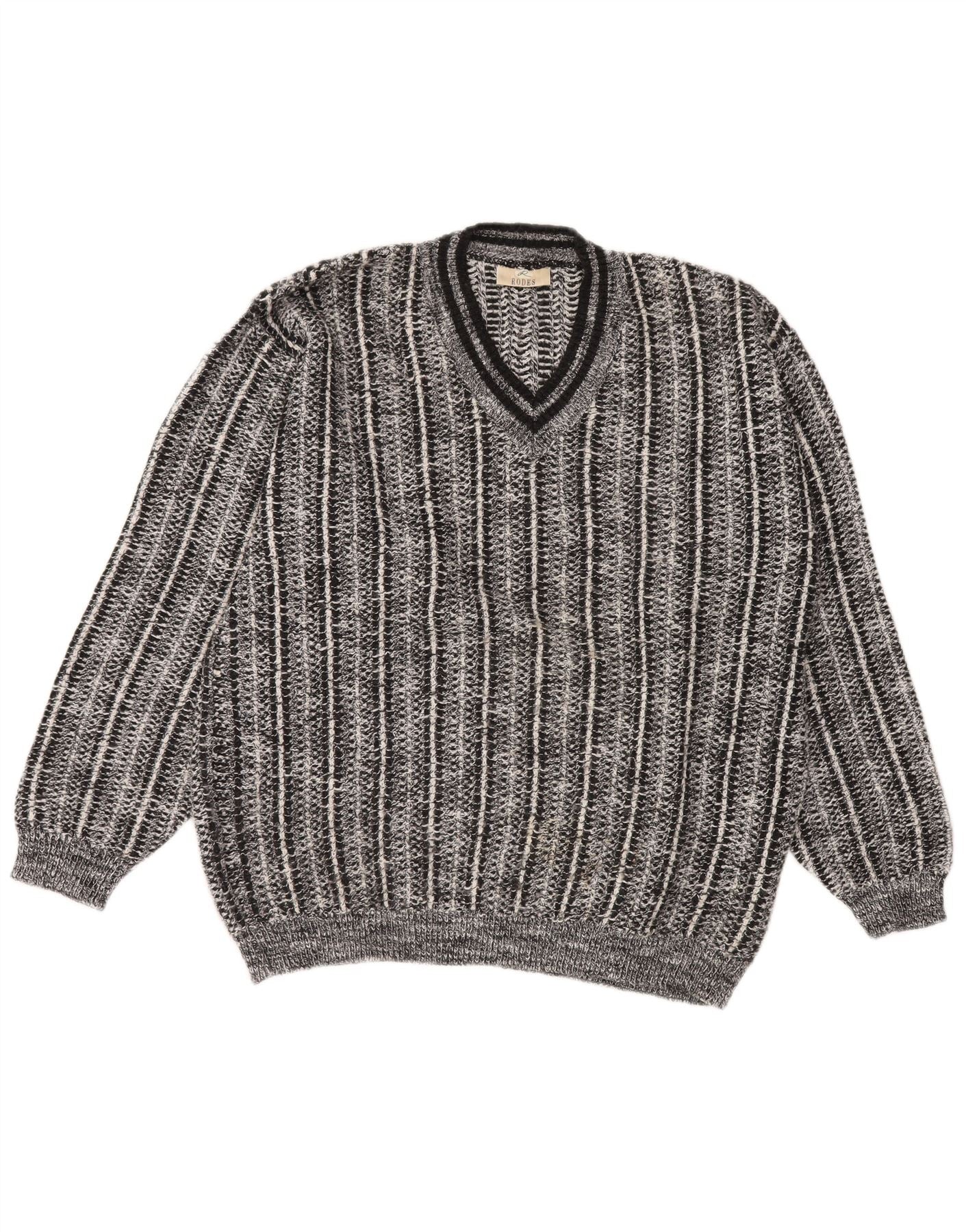 RODES Maglione da uomo con scollo a V, grande acrilico a righe grigie