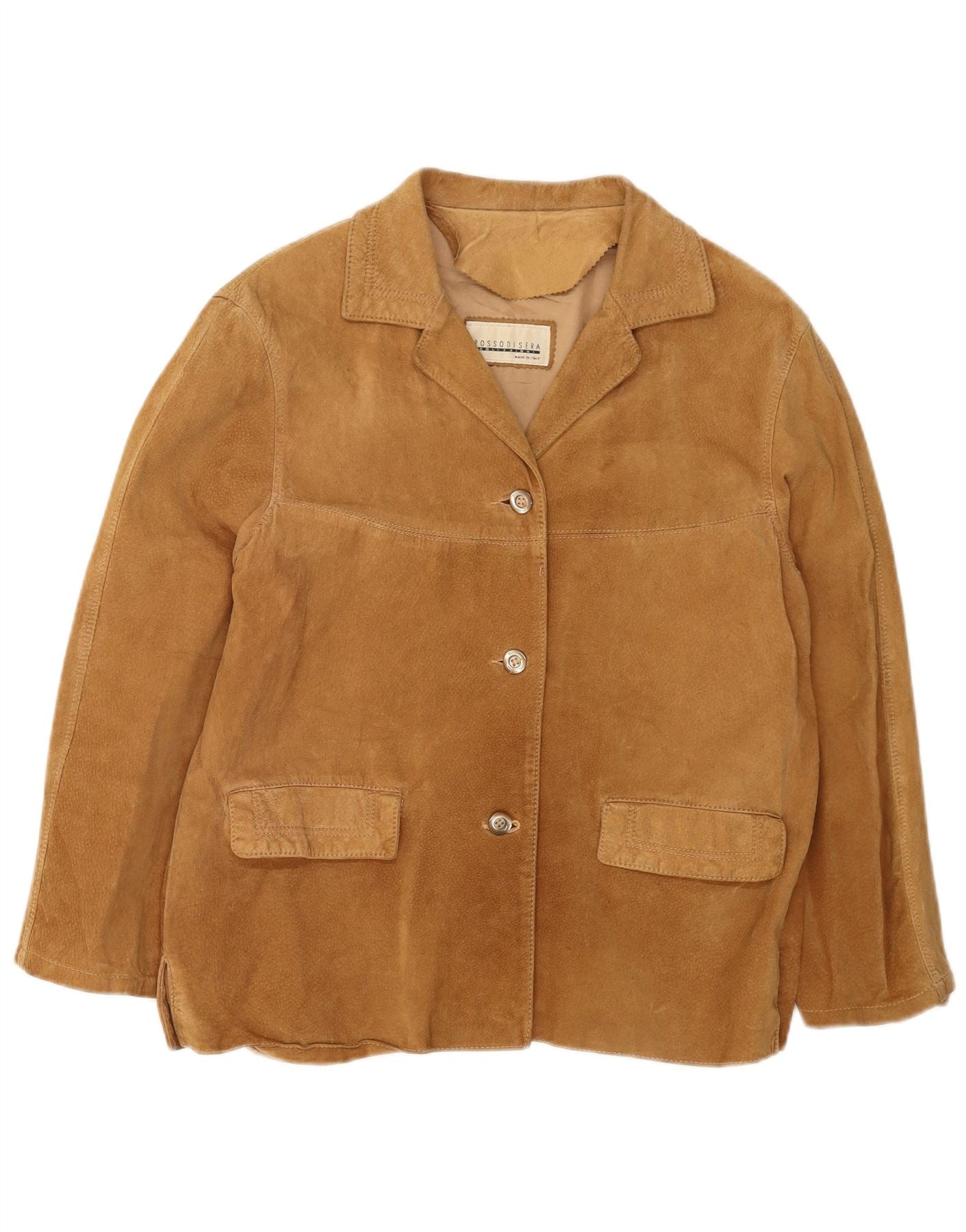 Giacca blazer in pelle scamosciata da donna a 3 bottoni Rossodisera UK 14 Beige medio