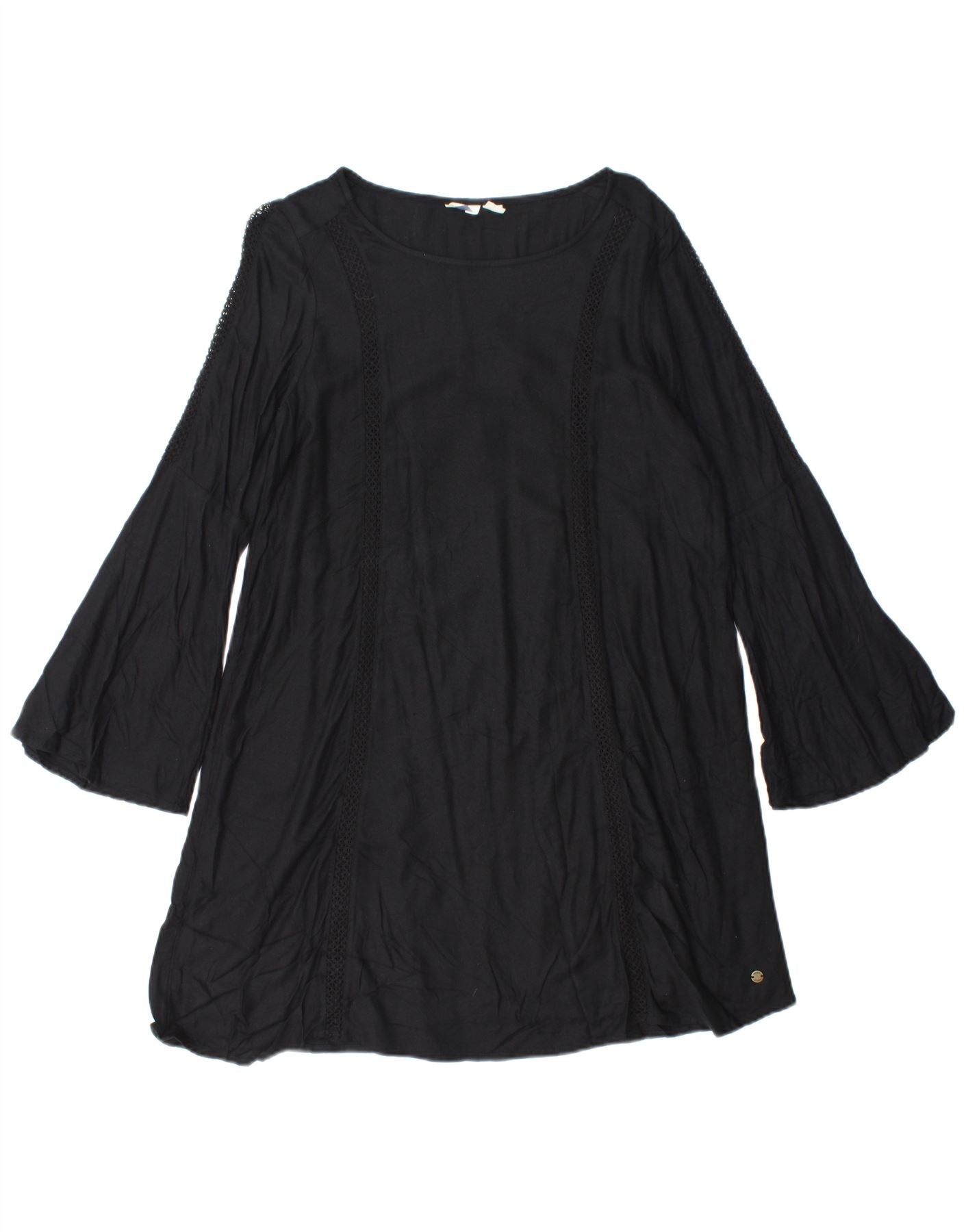 Abito a trapezio da donna a maniche lunghe ROXY UK 10 piccolo in cotone nero