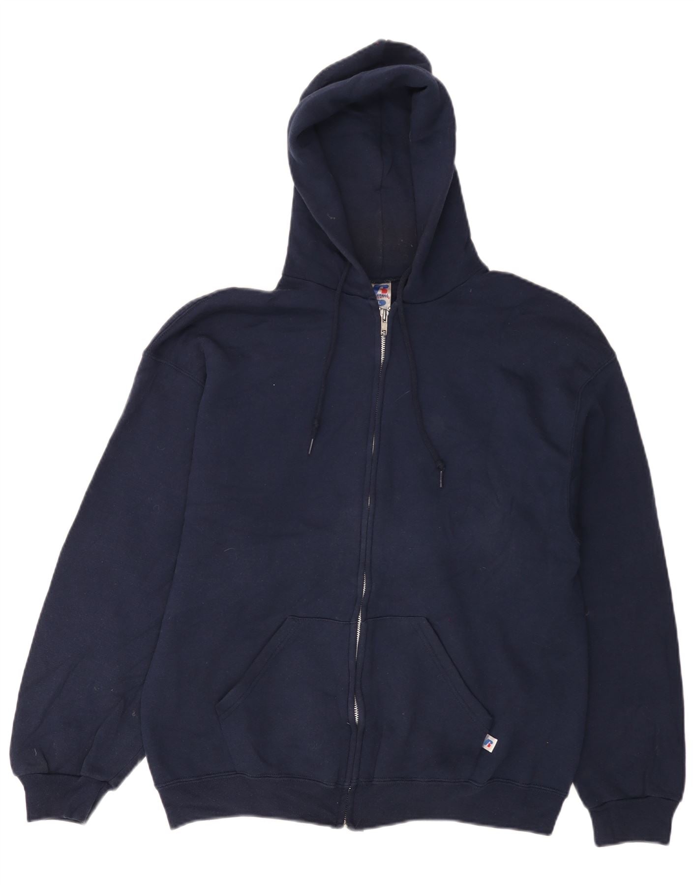 RUSSELL ATHLETIC Maglione con cappuccio e zip Dri-Power da uomo di grandi dimensioni in cotone blu navy