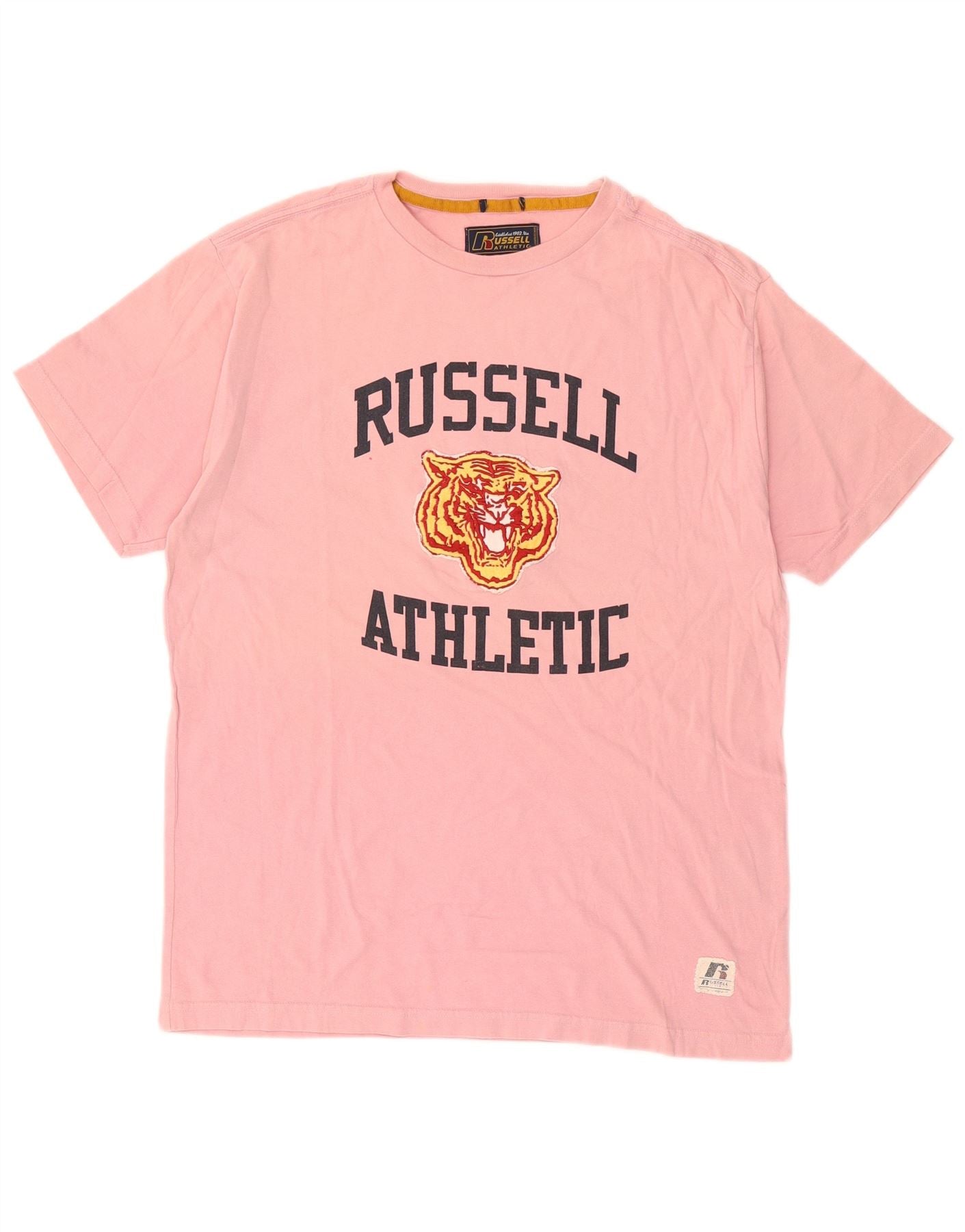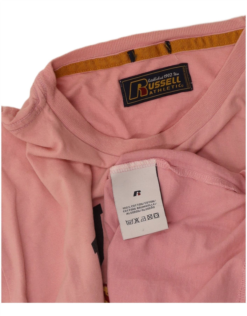 RUSSELL ATHLETIC Mens Graphic T-Shirt Top Large Pink Cotton