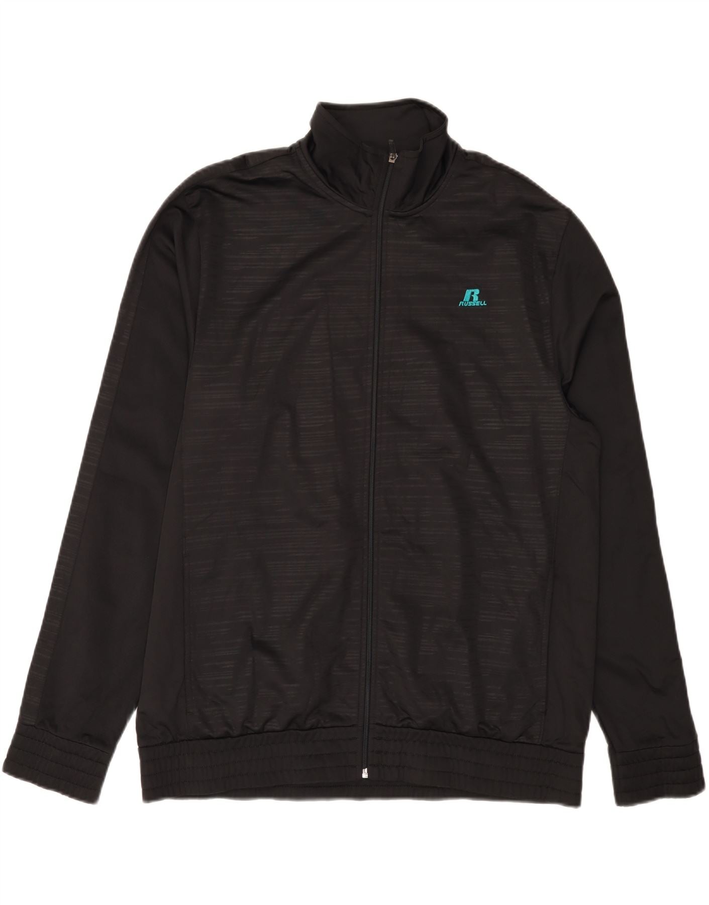 RUSSELL ATHLETIC Mens Tracksuit Top Jacket XL Black Flecked Polyester