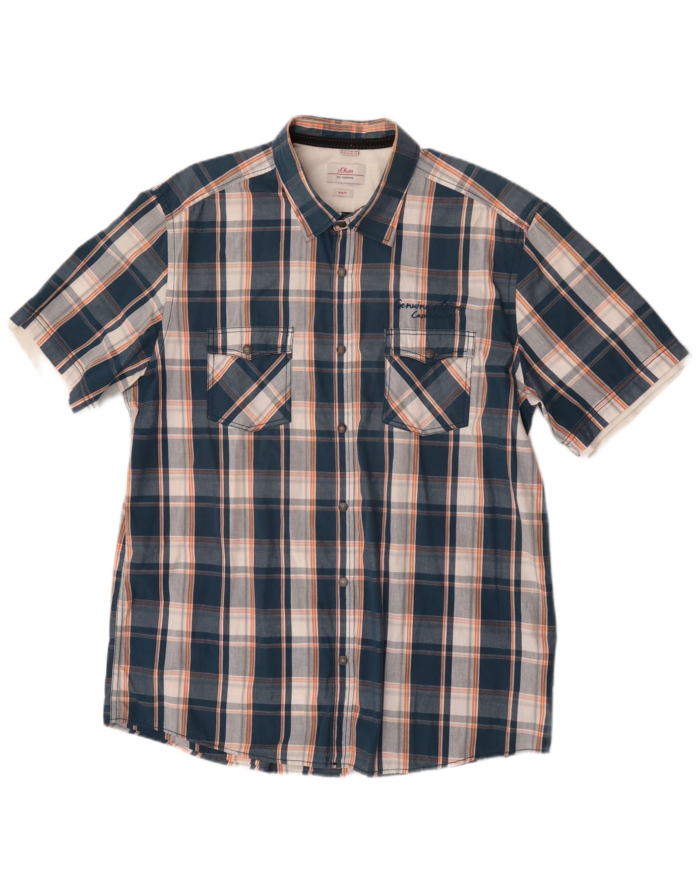 Camicia a maniche corte slim fit da uomo S.Oliver 2XL in cotone a quadri blu