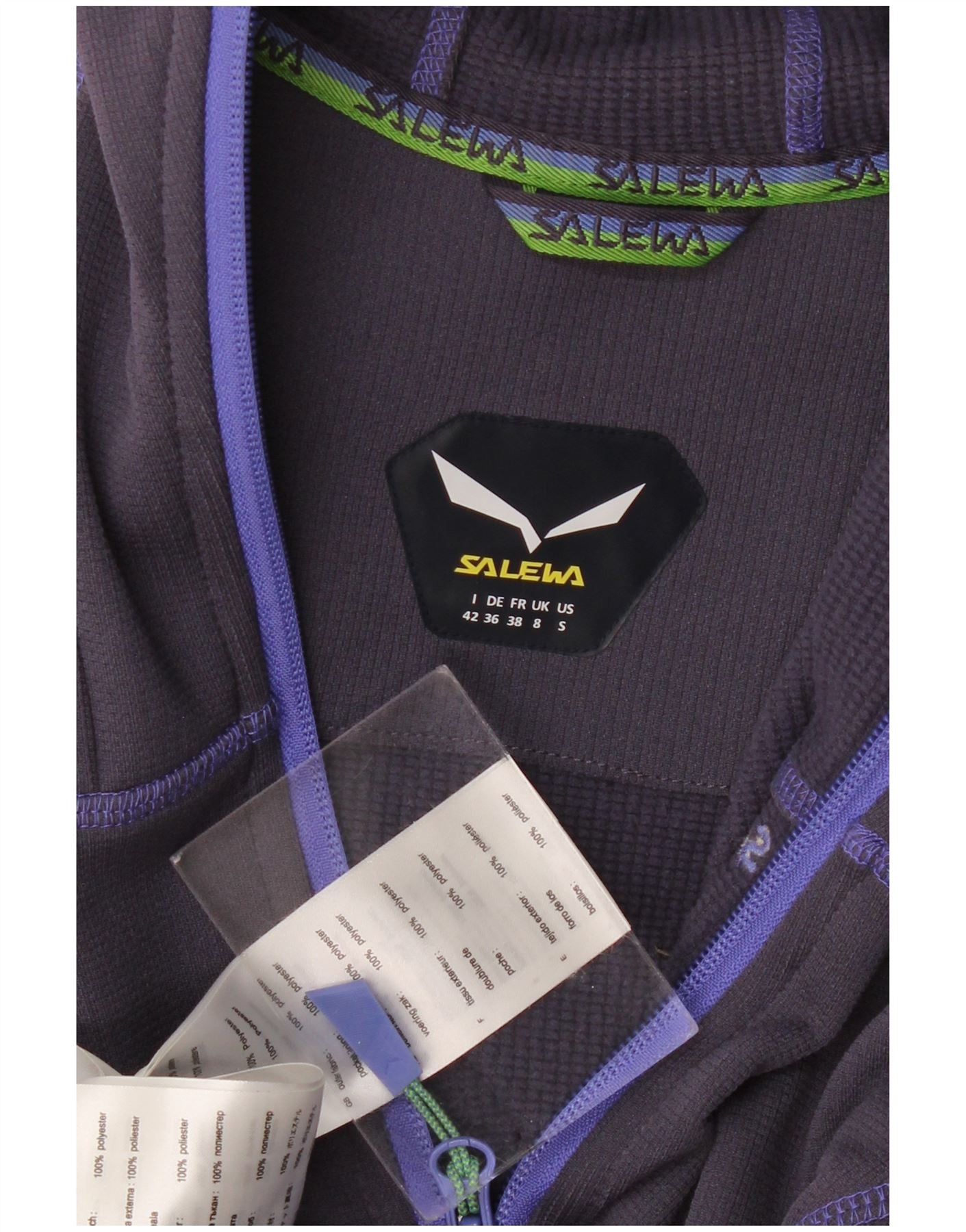 - Descrizione dell'IA: Questa felpa con cappuccio con zip da donna Salewa è realizzata in pile di poliestere traspirante. Presenta una ricca tonalità viola con zip integrale e finiture blu a contrasto. Il design con cappuccio e il collo alto offrono calore e copertura. Le maniche lunghe e la vestibilità regolare garantiscono comfort. Un sottile logo Salewa aggiunge un tocco di marca. Questo pezzo è ideale per l'escursionismo e lo sport.