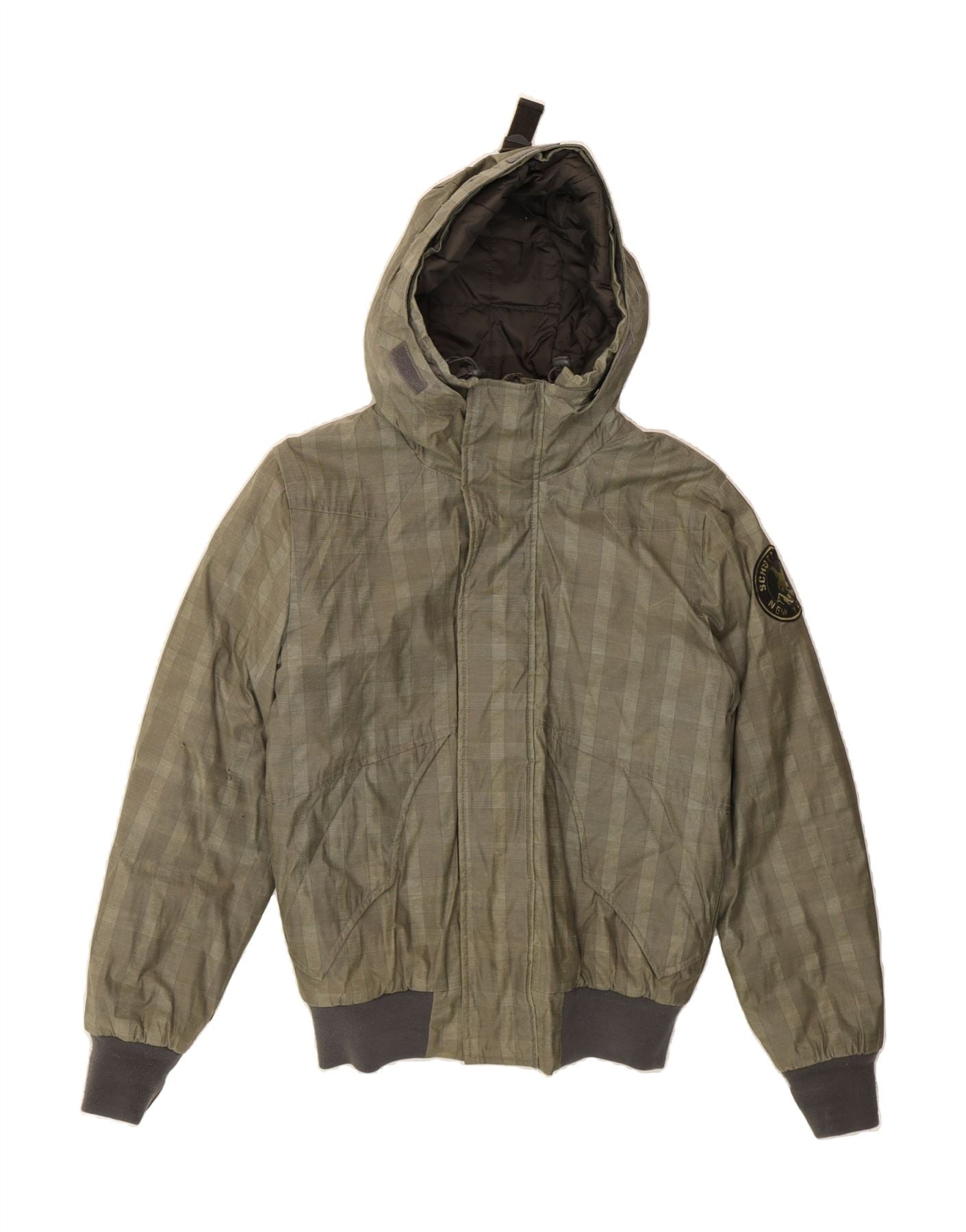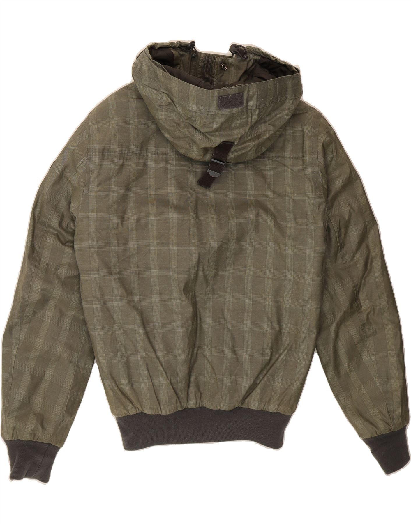 SCHOTT Mens Hooded Padded Bomber Jacket UK 36 Small Green Check Cotton