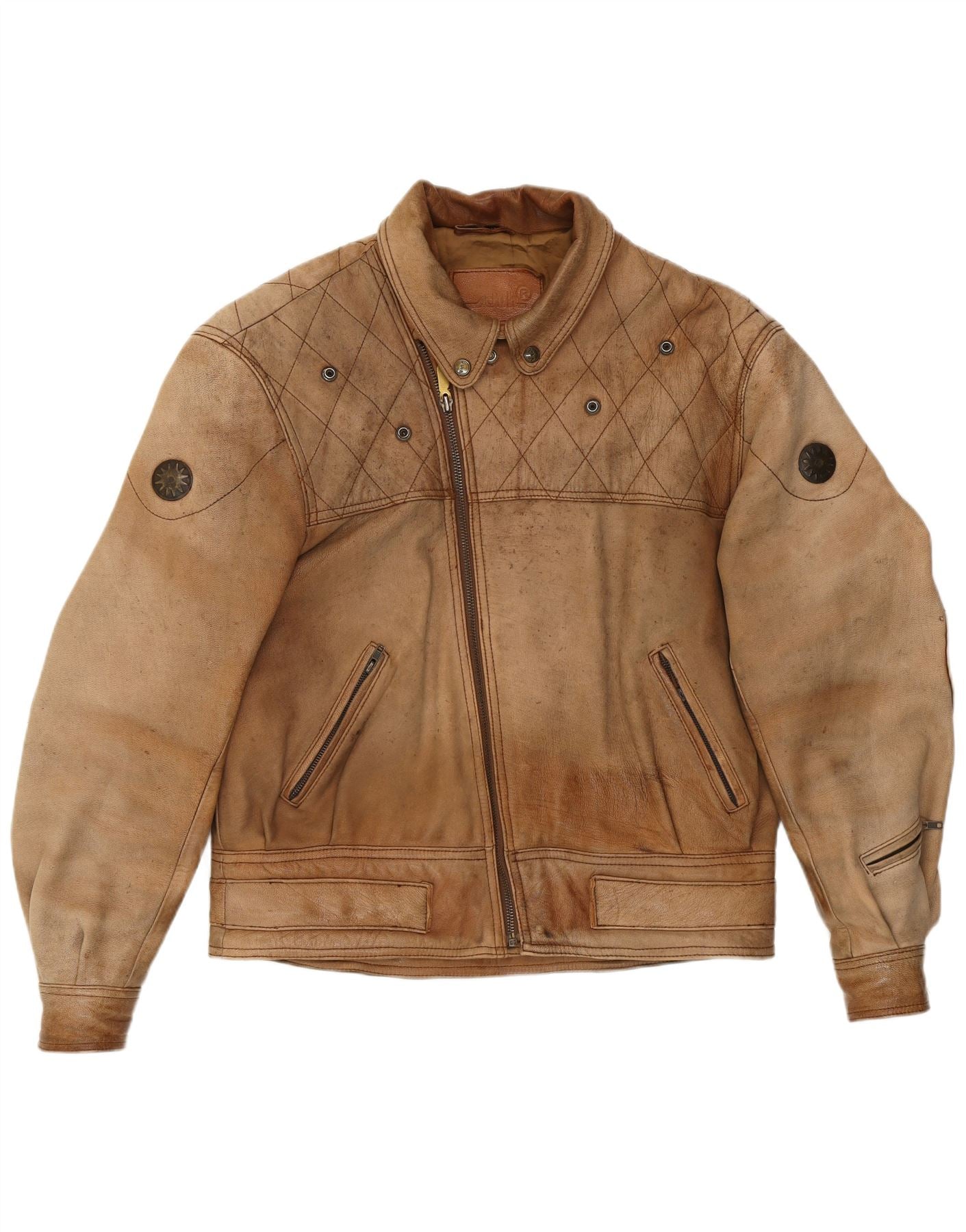 - Descrizione dell'IA: Questa giacca da motociclista da uomo Schuh è realizzata in vera pelle di colore marrone. Lo scollo con colletto e le maniche lunghe si aggiungono al suo stile classico. Presenta una chiusura con zip e una vestibilità regolare. La giacca è foderata al 100% in poliestere e ha tasche con cerniera. Gli accenti trapuntati aggiungono dettagli sottili a questo design senza tempo.