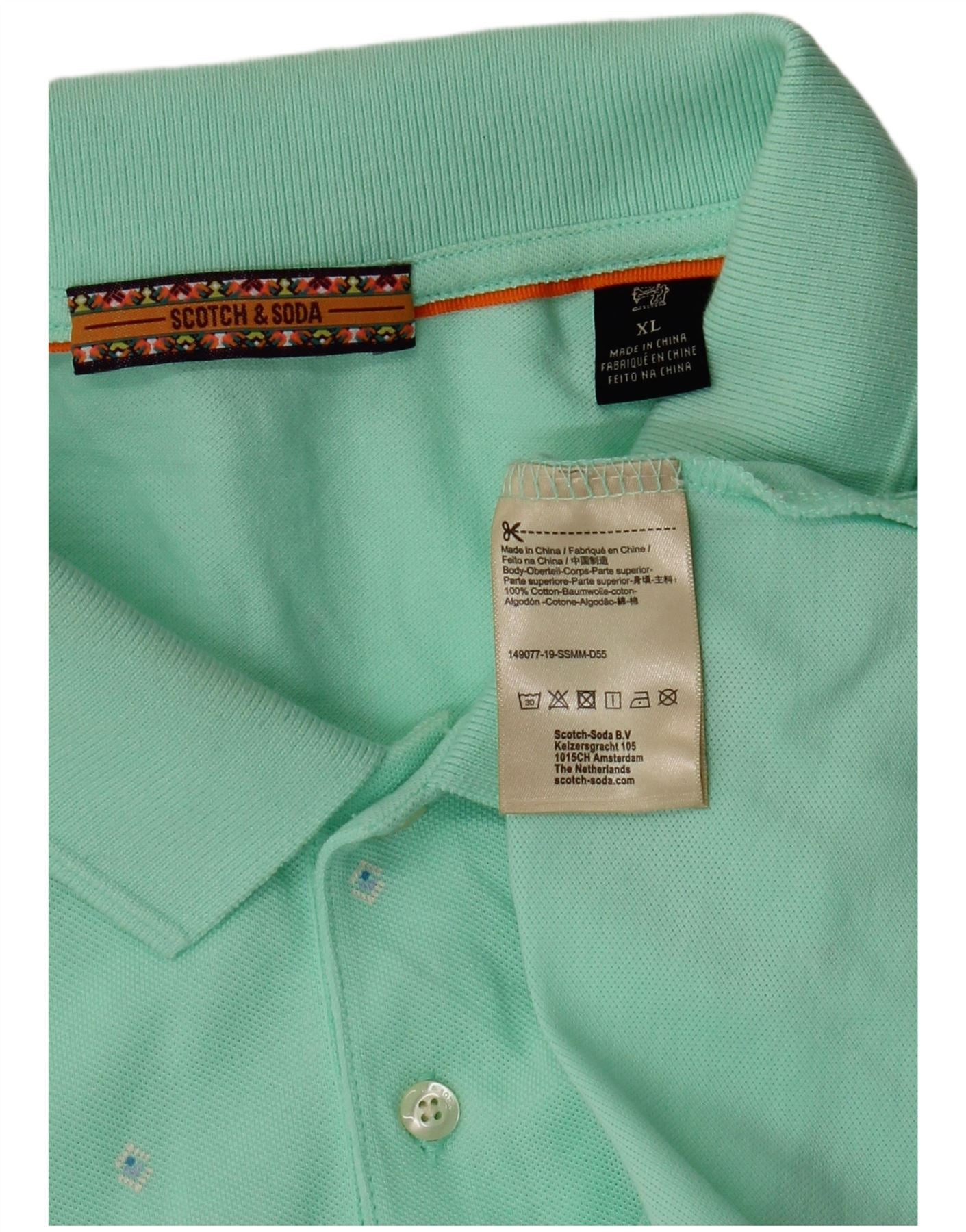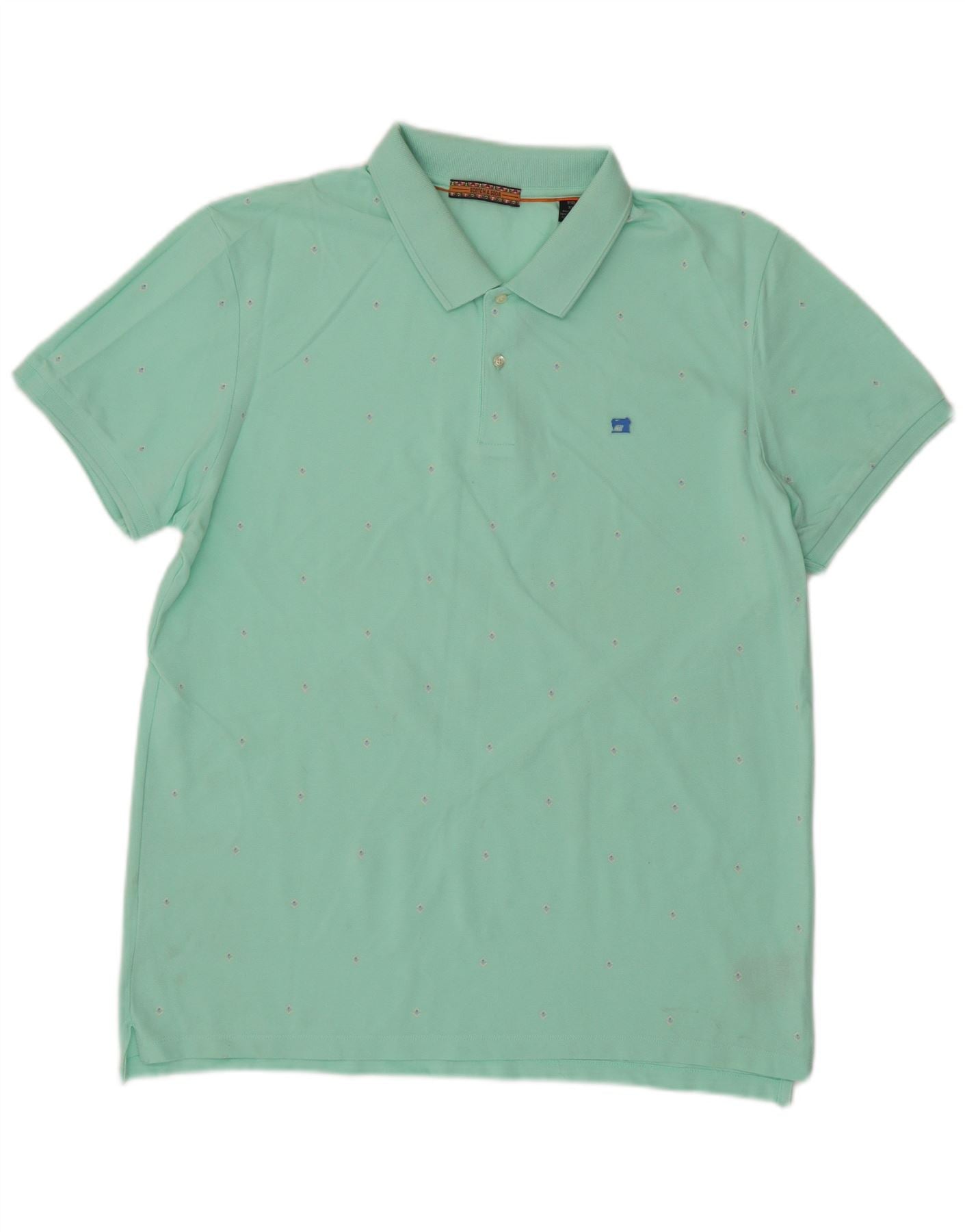 SCOTCH & SODA Mens Abstract Pattern Polo Shirt XL Turquoise Cotton