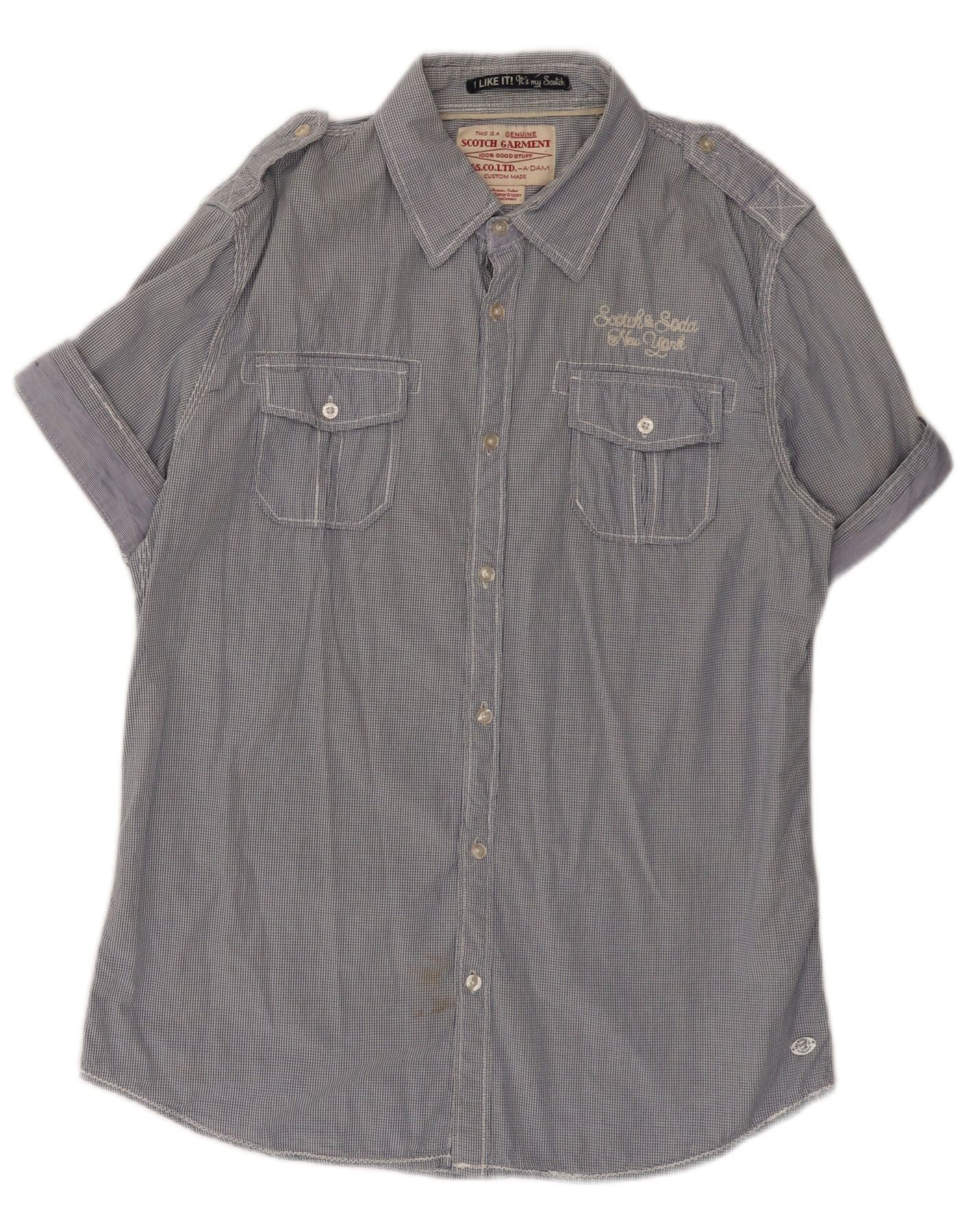 SCOTCH & SODA Camicia militare a maniche corte da uomo grande in cotone a quadretti blu