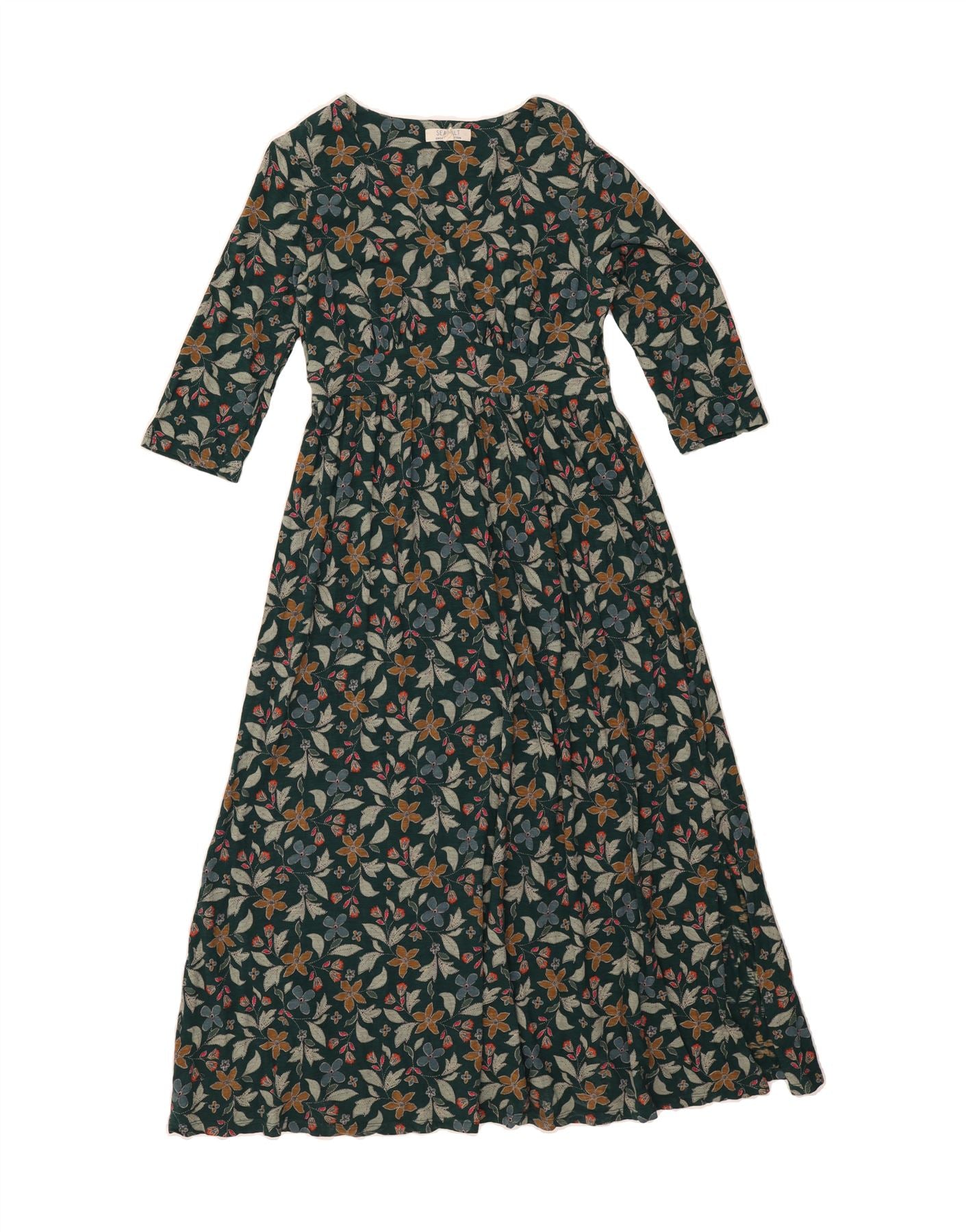 SEASALT Womens 3/4 Sleeve Maxi Dress UK 12 Medium Green Floral Cotton