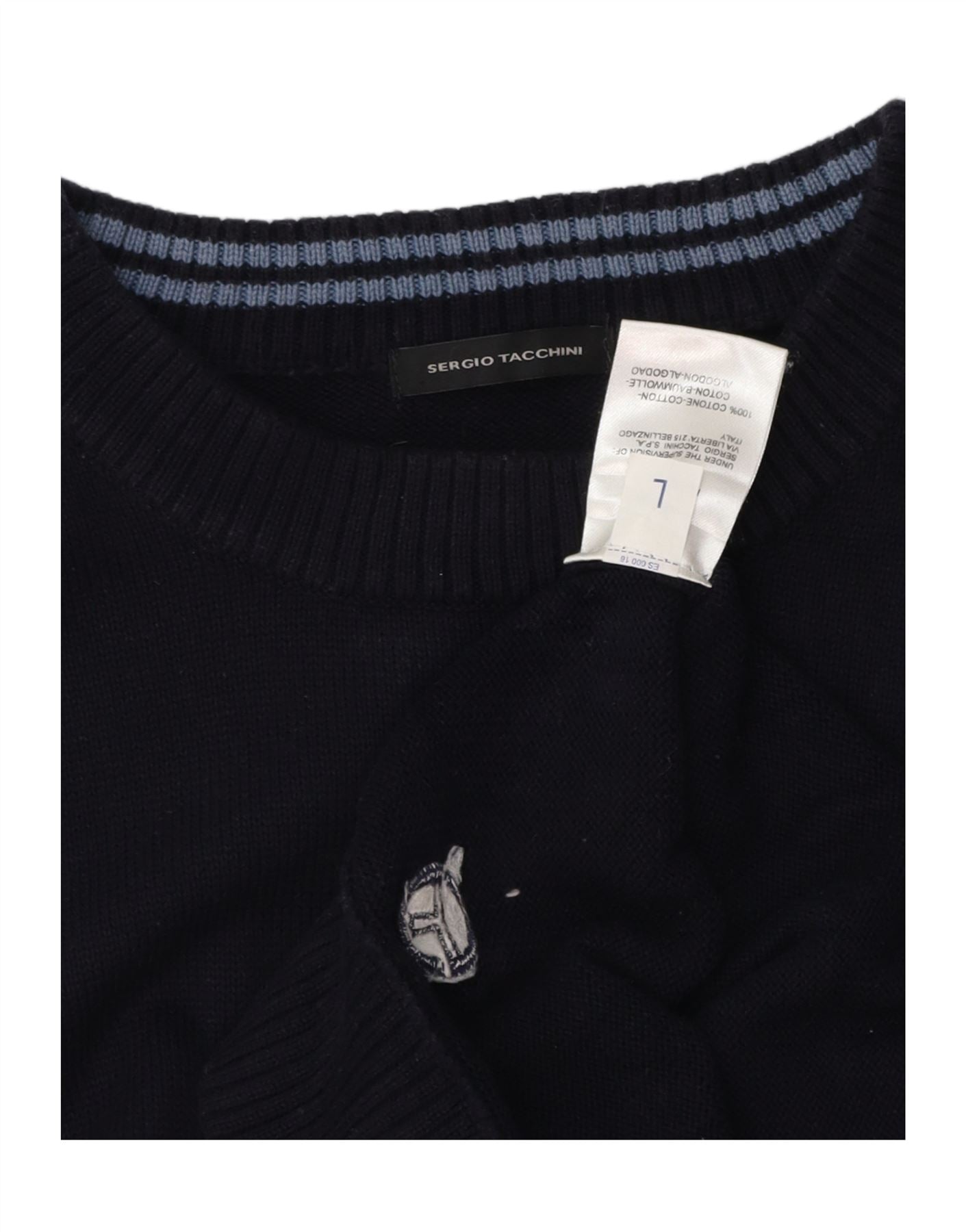 SERGIO TACCHINI Mens Crew Neck Jumper Sweater Large Navy Blue Cotton