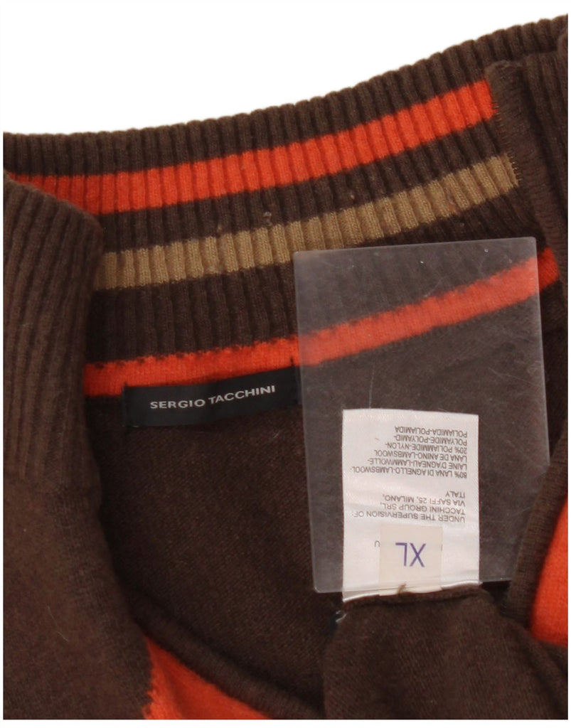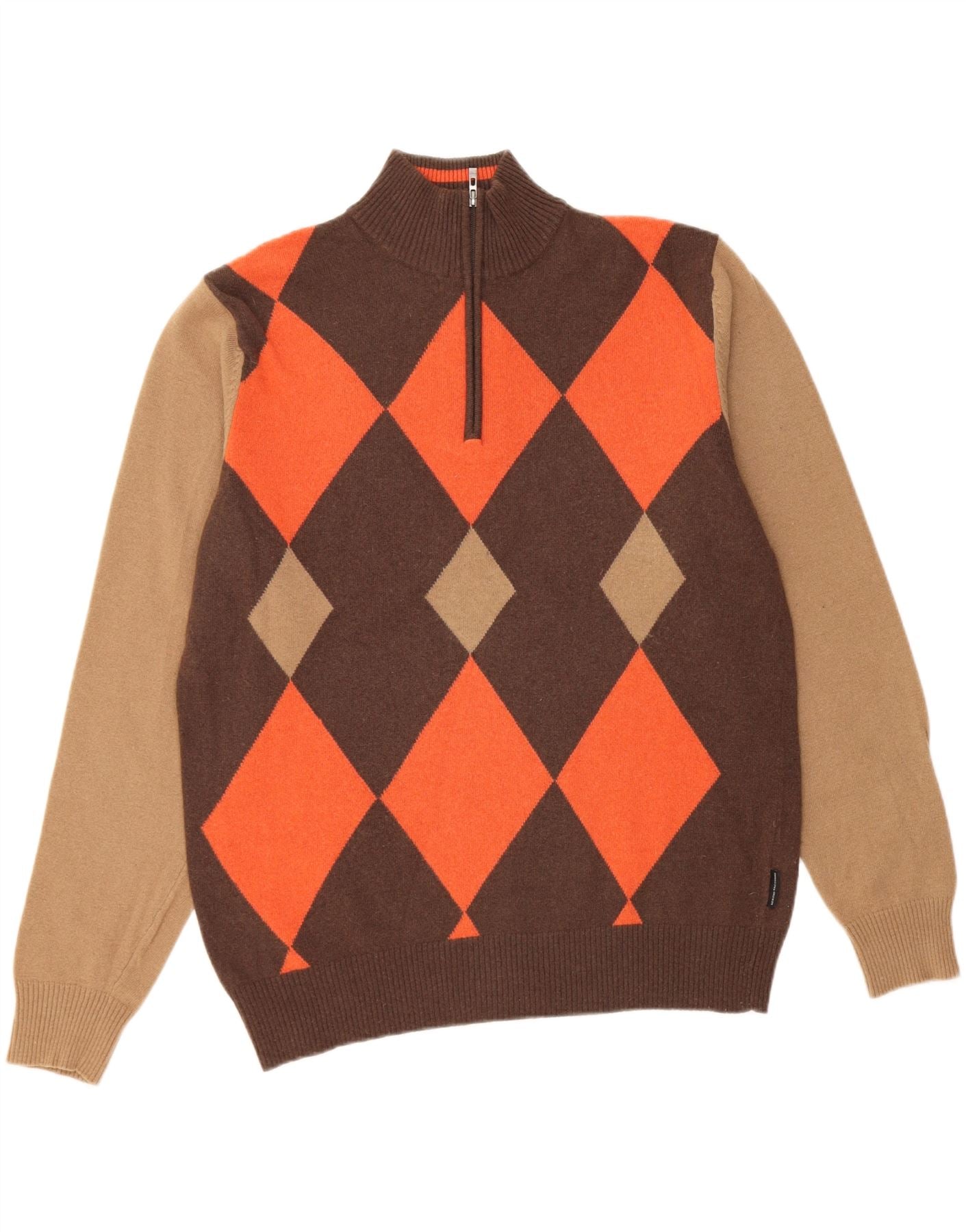 SERGIO TACCHINI Maglione da uomo con zip e collo XL Marrone Argyle/Diamond Wool