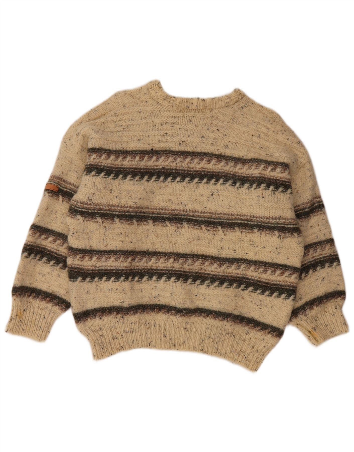 SERGIO TACCHINI Maglione maglione girocollo da donna UK 16 Grandi righe beige