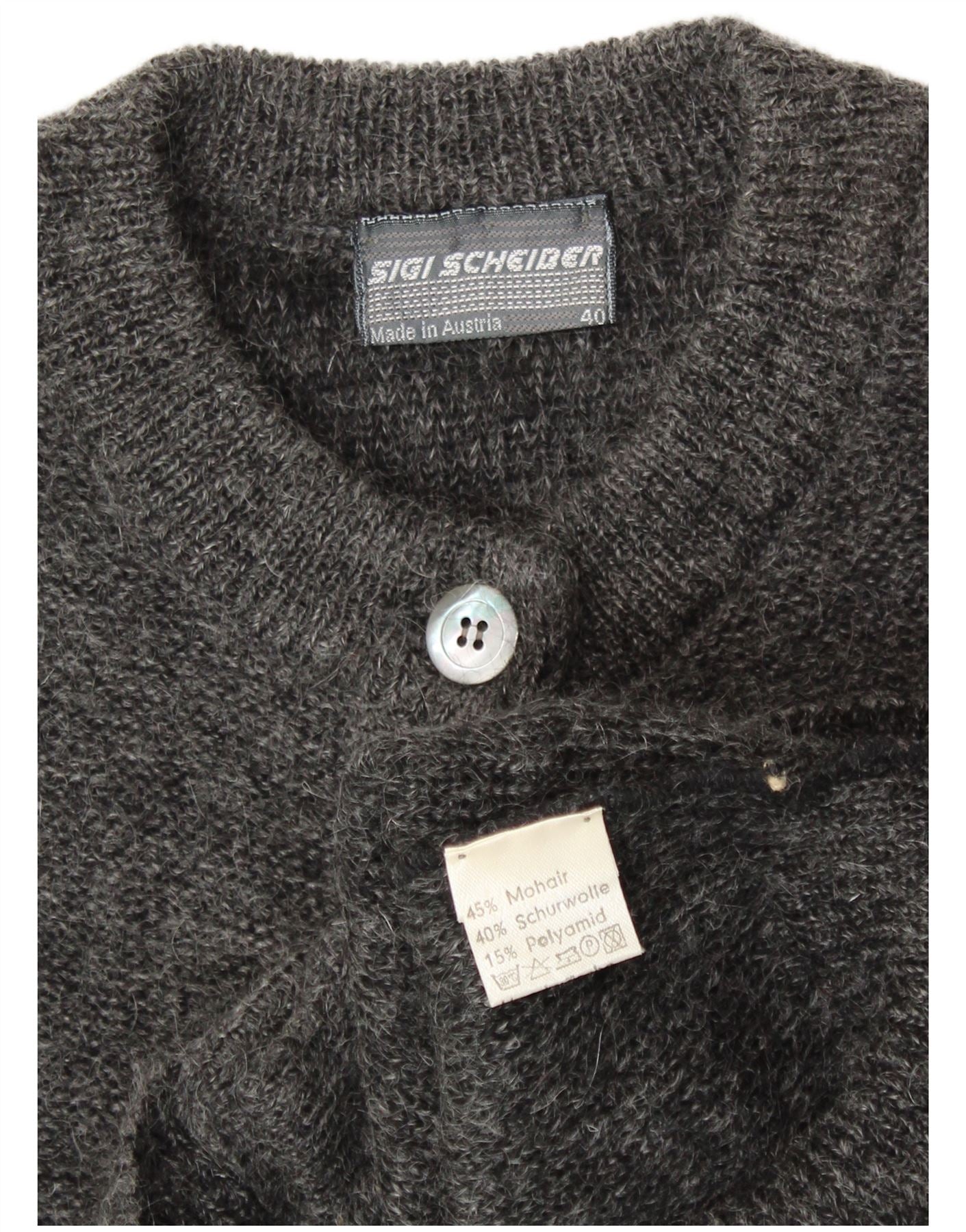 SIGI SCHEIBERG Maglione cardigan grafico da donna EU 40 Mohair grigio medio