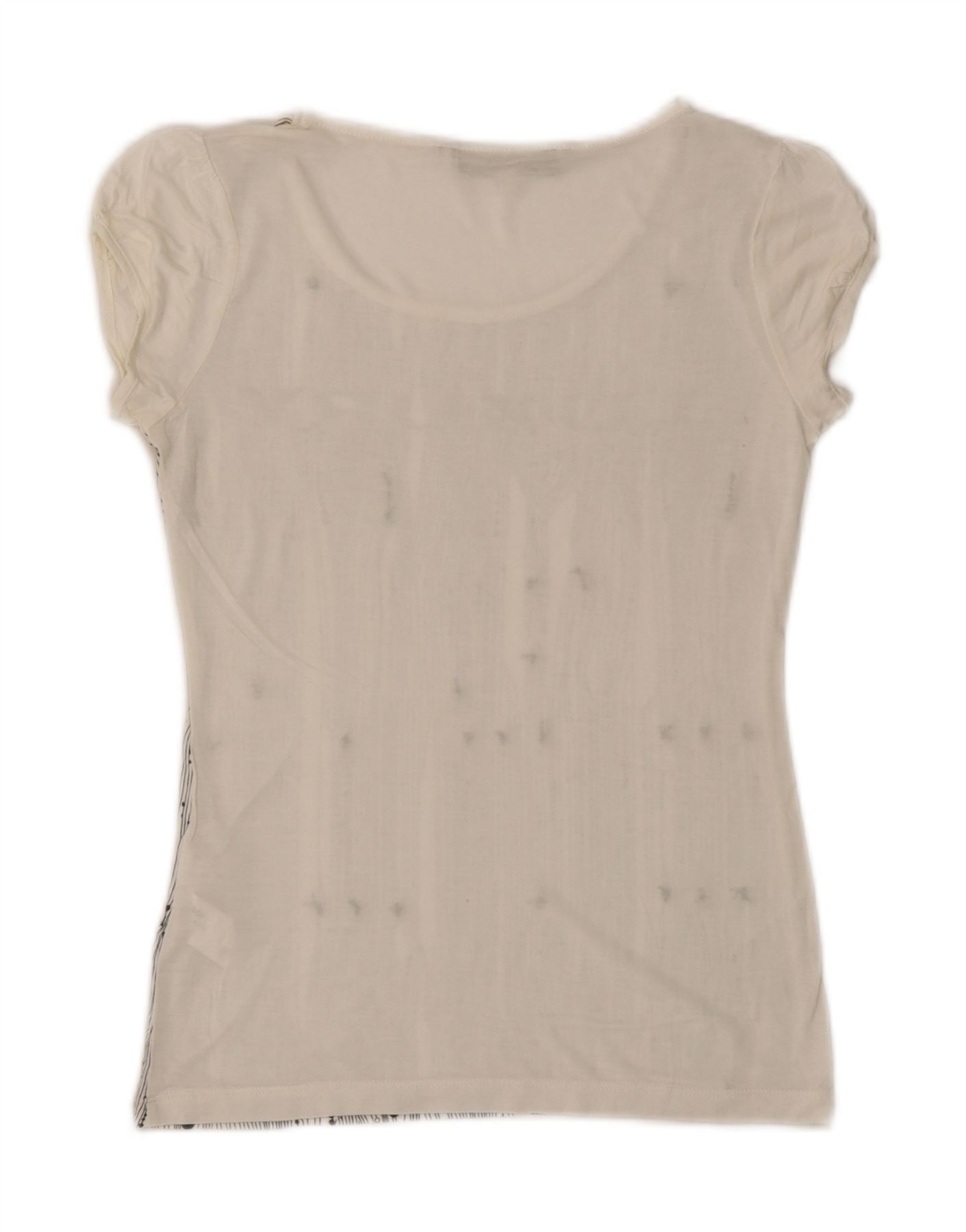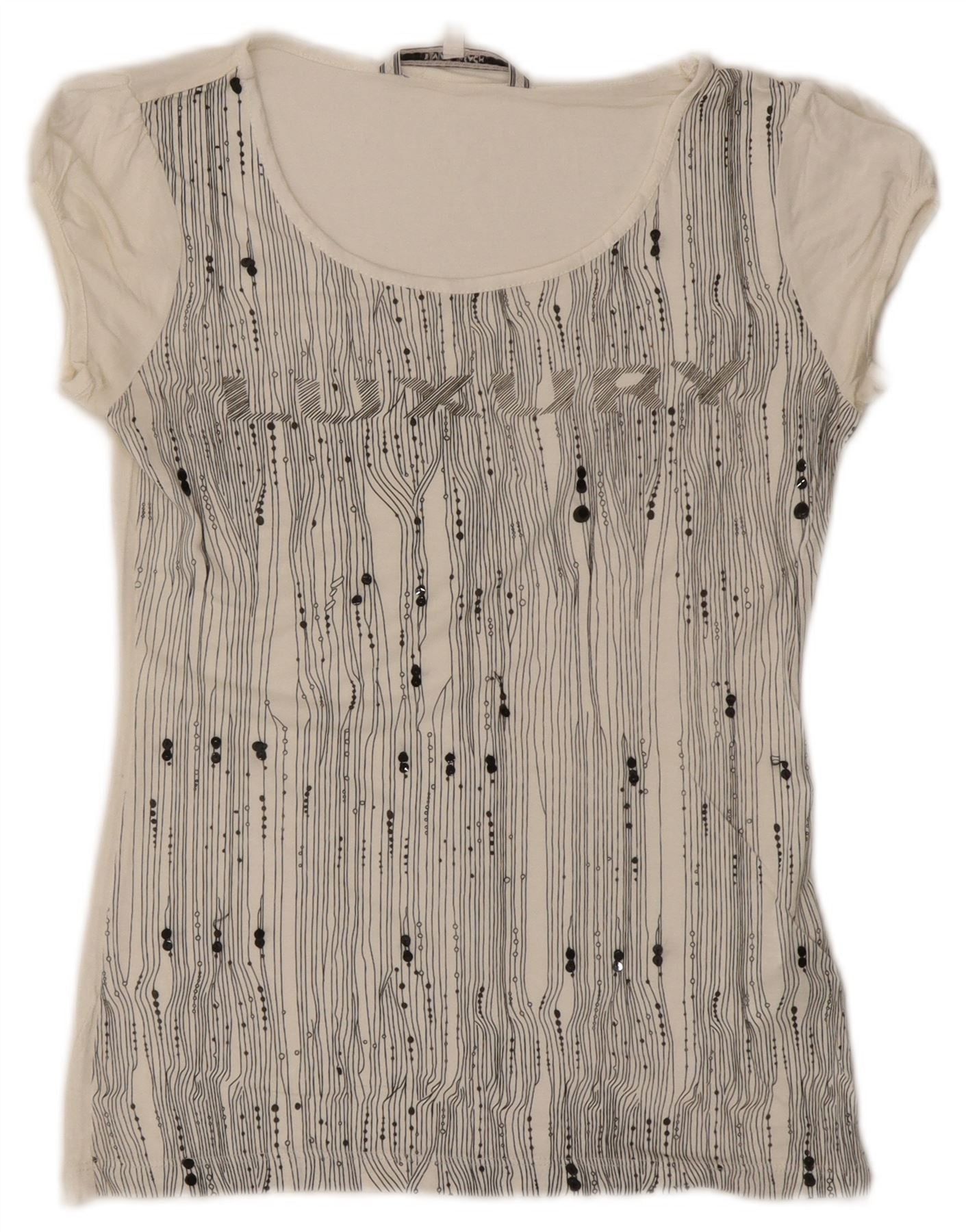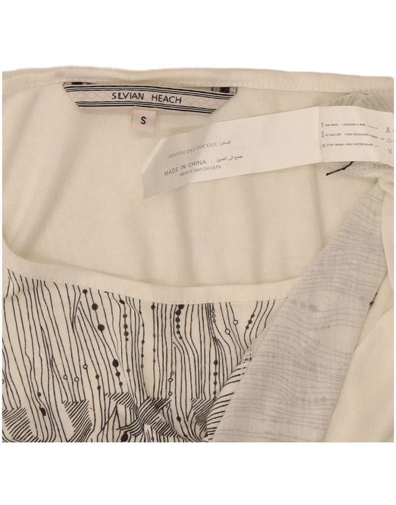 SILVIAN HEACH T-shirt grafica da donna Top UK 10 Piccola bianca geometrica