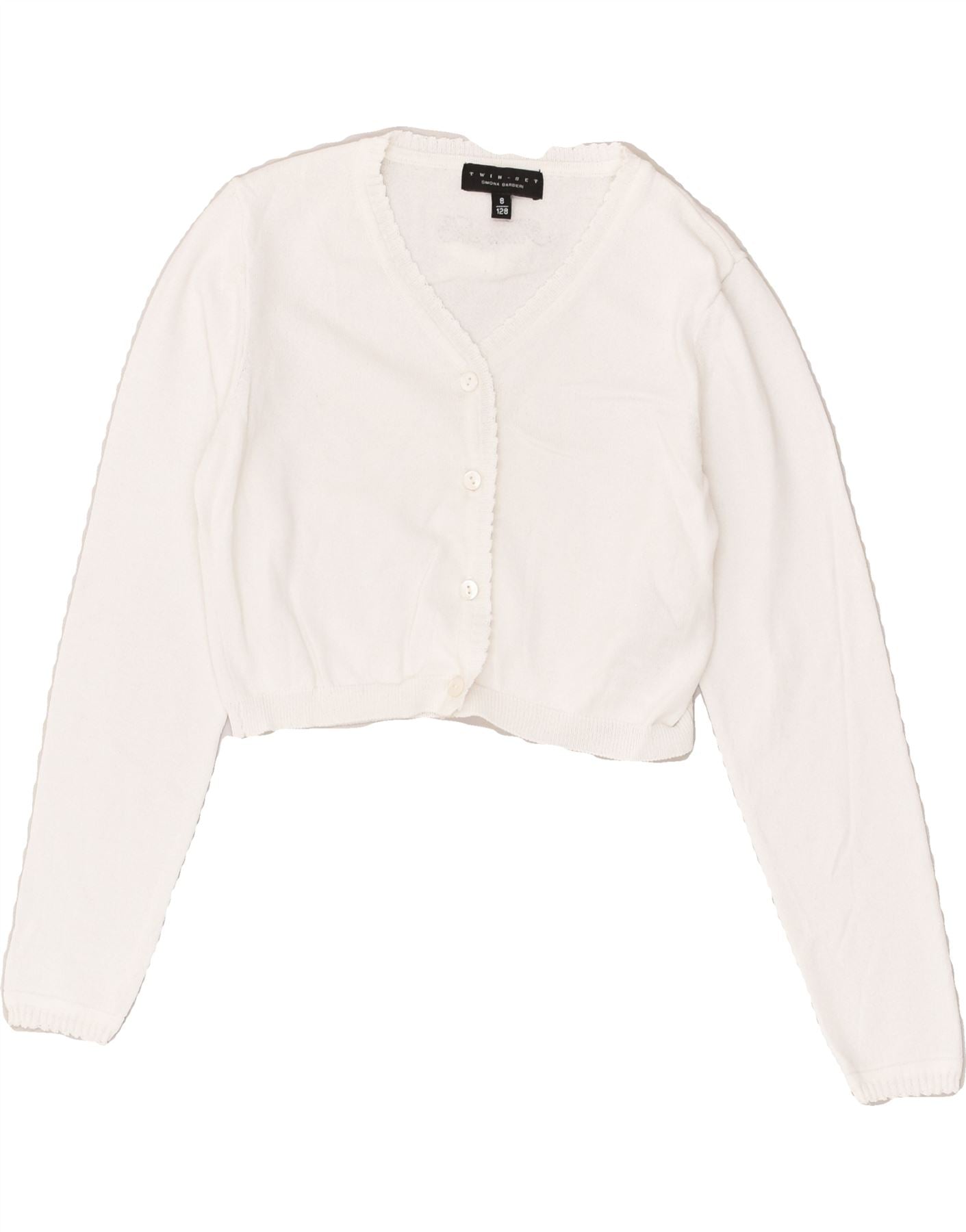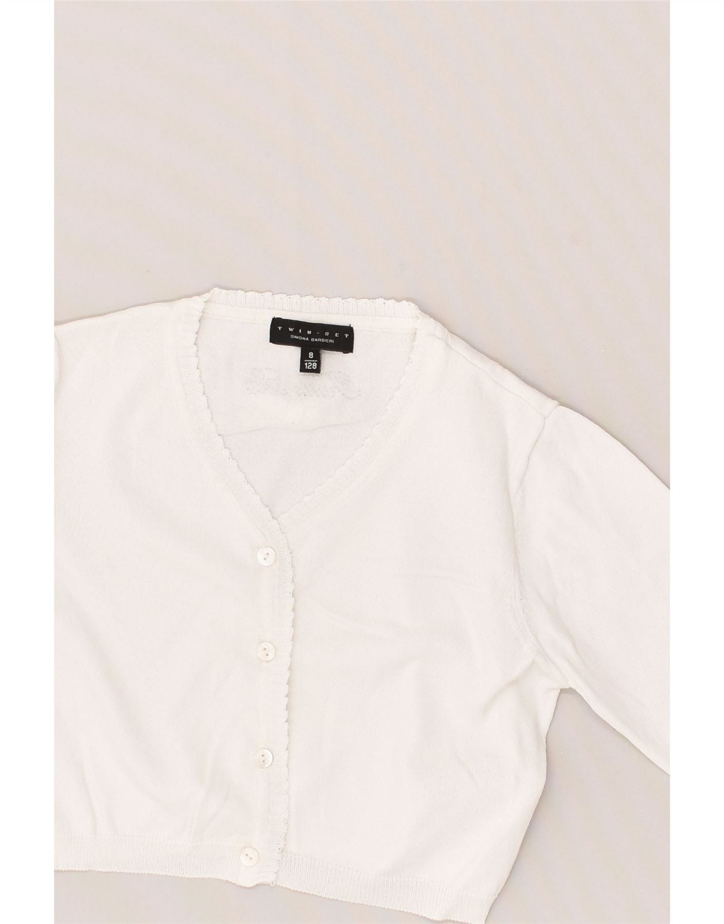 SIMONA BARBIERI Girls Twin-Set Crop Cardigan Sweater 7-8 Years White