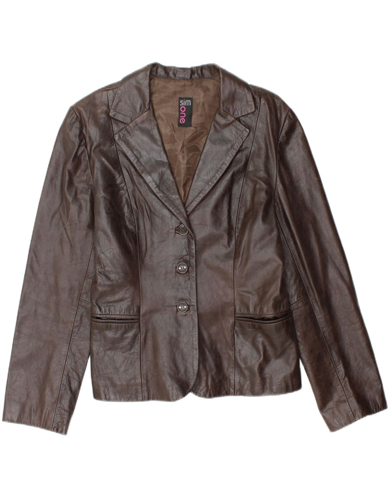 SIMONE Giacca Blazer in Pelle da Donna a 3 Bottoni IT 52 2XL Pelle Marrone