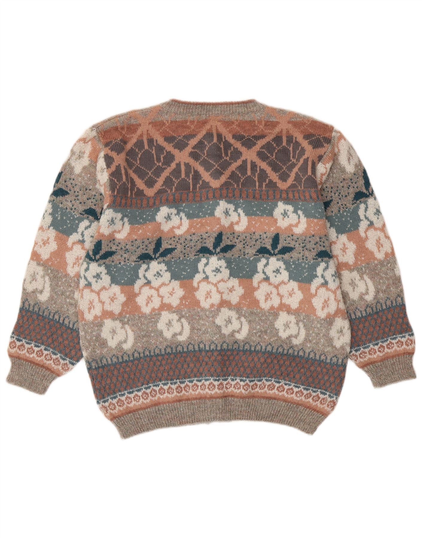 SIMONE Maglione cardigan da donna UK 16 Grande lana floreale multicolore