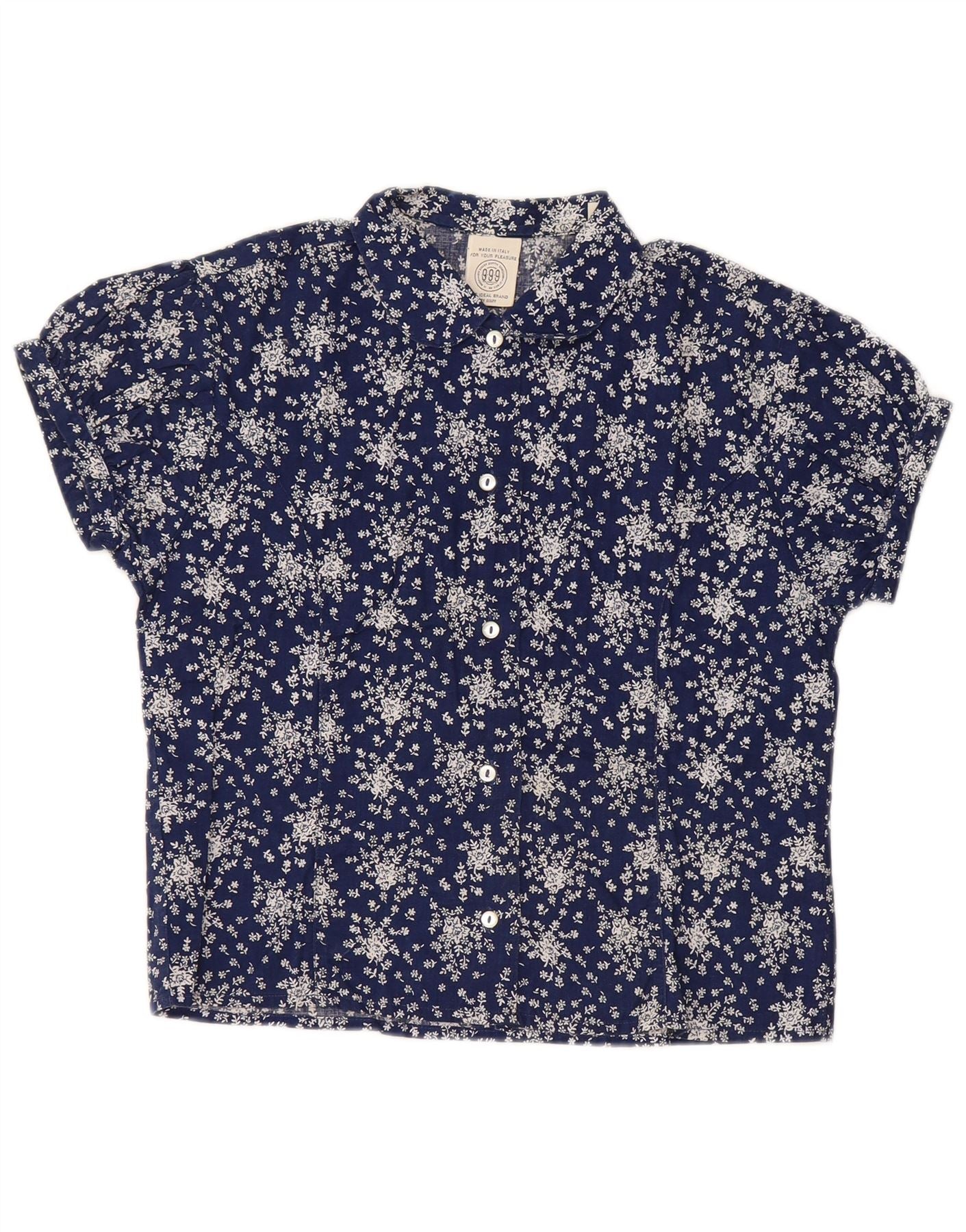 Camicetta da donna a maniche corte SISLEY corta UK 14 grande blu navy floreale
