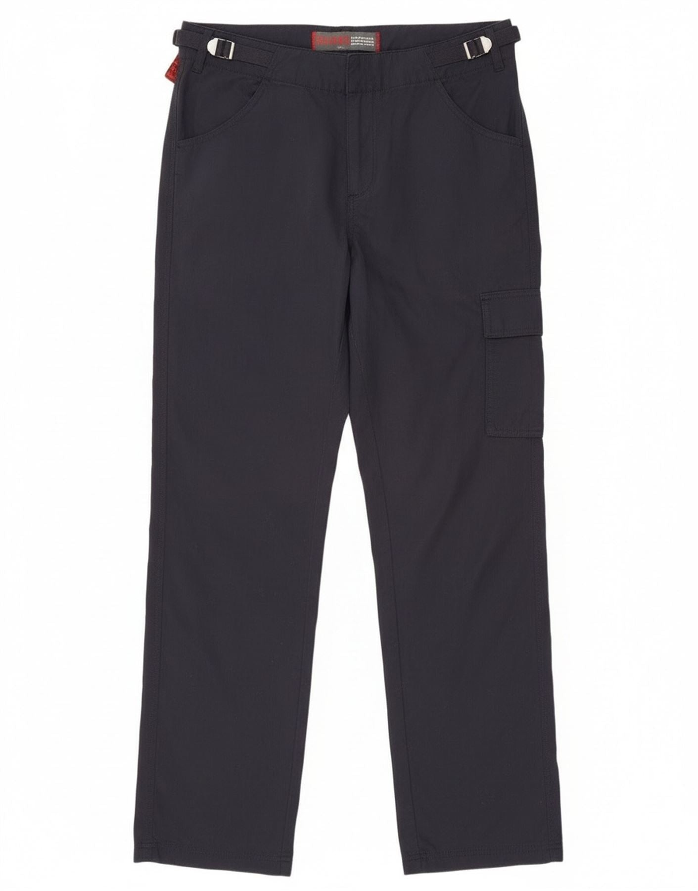 - Descrizione dell'IA: Questi pantaloni cargo da donna Slam sono realizzati in un resistente tessuto misto blu navy, composto per l'80% da cotone e per il 20% da poliammide. Questo offre una consistenza liscia e resistente. Presentano una vestibilità regolare con gambe dritte per un movimento confortevole. La vita è regolabile, fissata con una chiusura a zip e dettagli con fibbia. Sono incluse pratiche tasche, con una distinta tasca cargo sul lato. Il design è pulito e funzionale, ideale per un abbigliamento sportivo o casual.