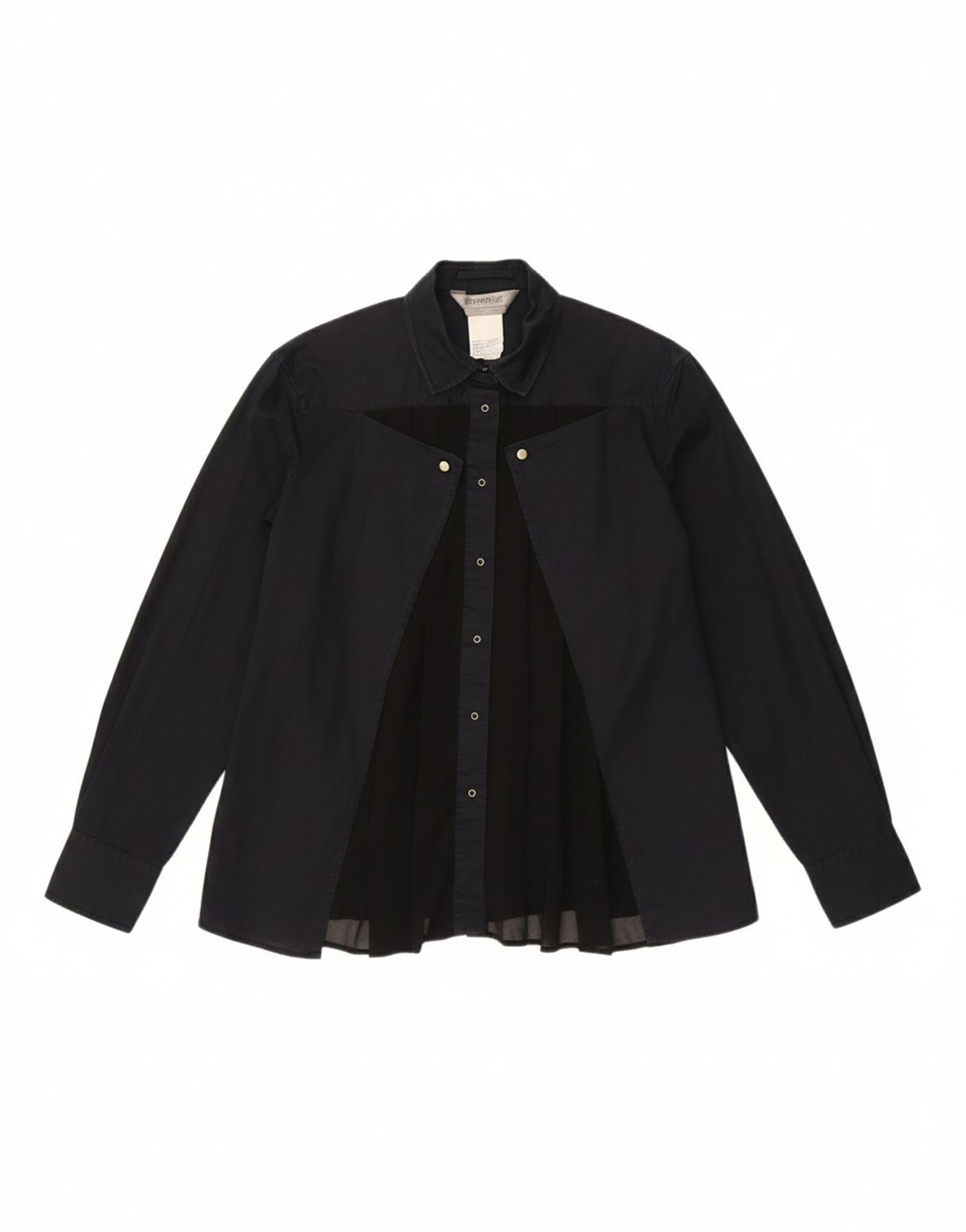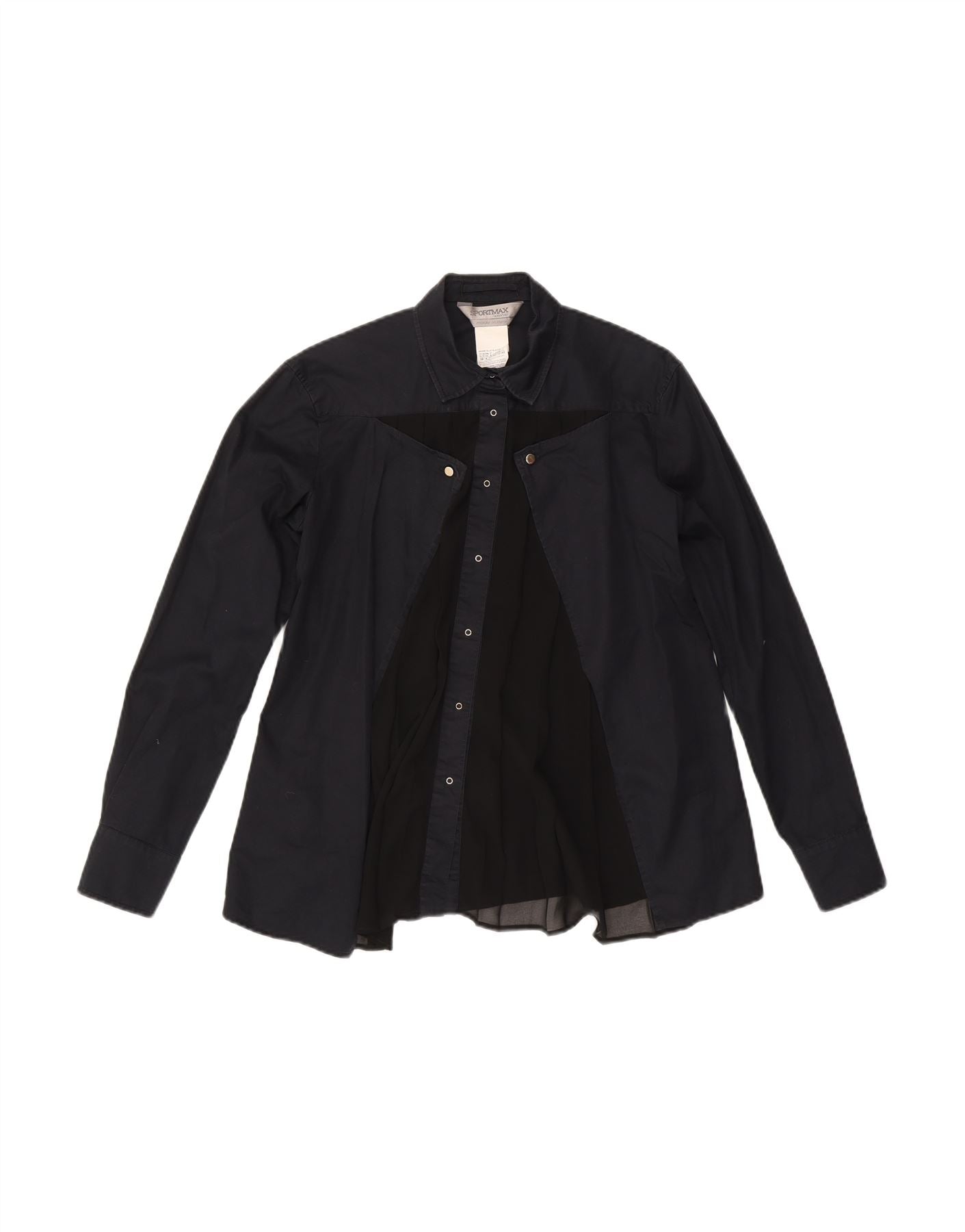 SPORTMAX Womens Oversized Shirt UK 10 Small Navy Blue Colourblock Cotton