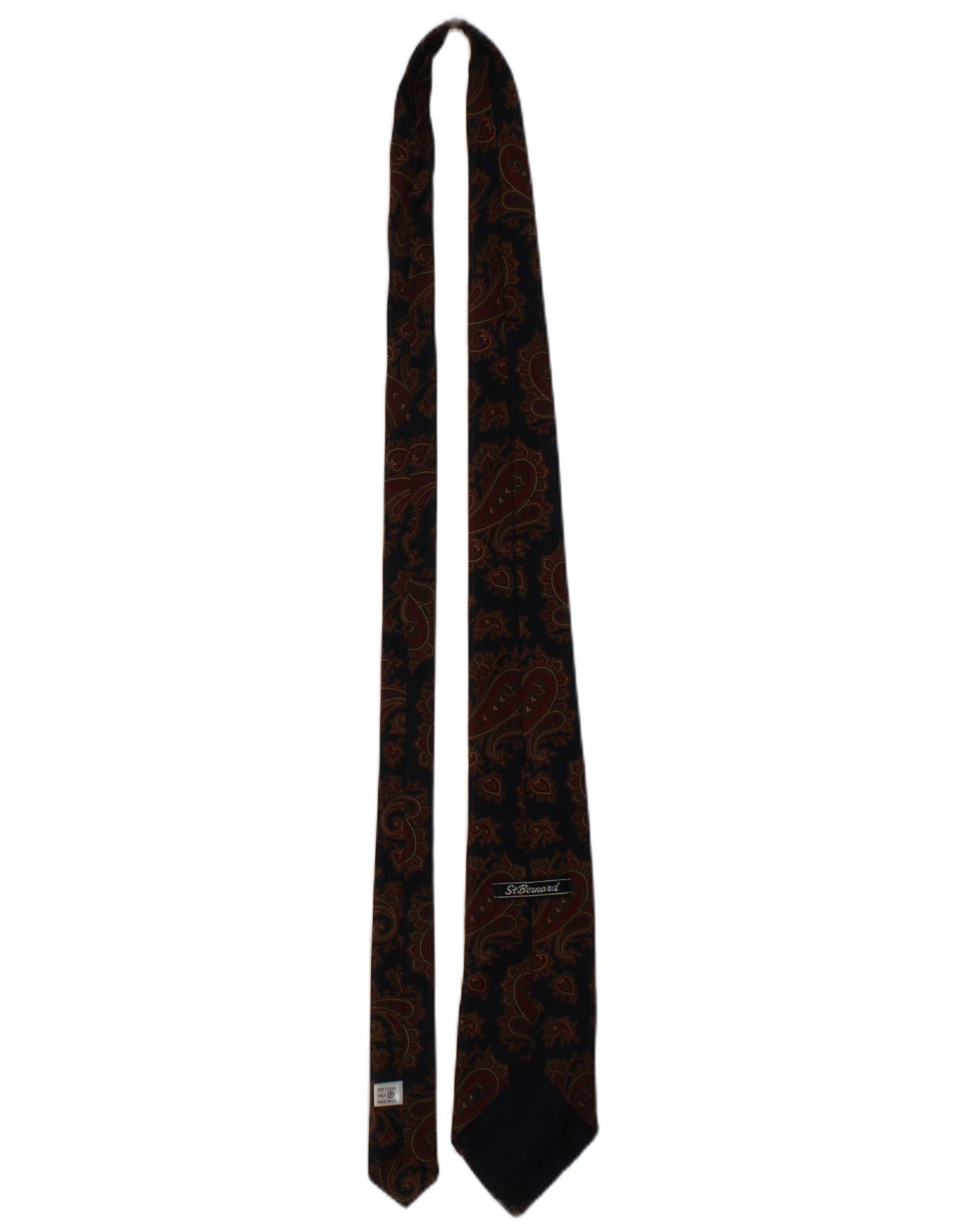 ST. BERNARD Mens Graphic Tie One Size Navy Blue Paisley Polyester Classic