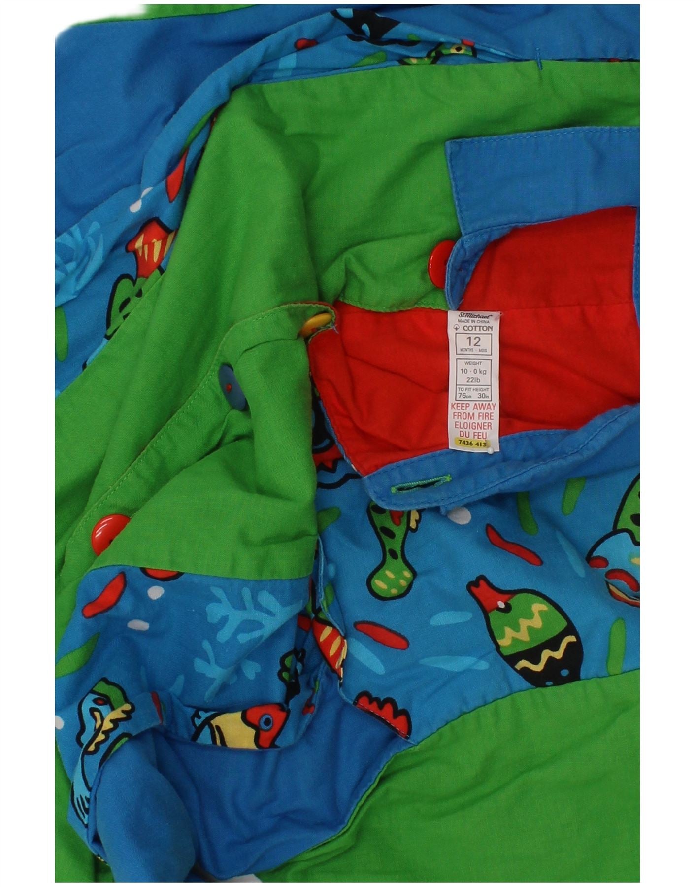 - AI Description: This St Michael baby boys jumpsuit is crafted from 100 percent woven cotton, ensuring comfort. It features a vibrant multicoloured animal print, making it playful. The collared neckline and short sleeves offer a classic look. Button closures provide easy dressing. A loose fit allows for unrestricted movement. Practical pockets add functionality, completing this charming and comfortable garment.