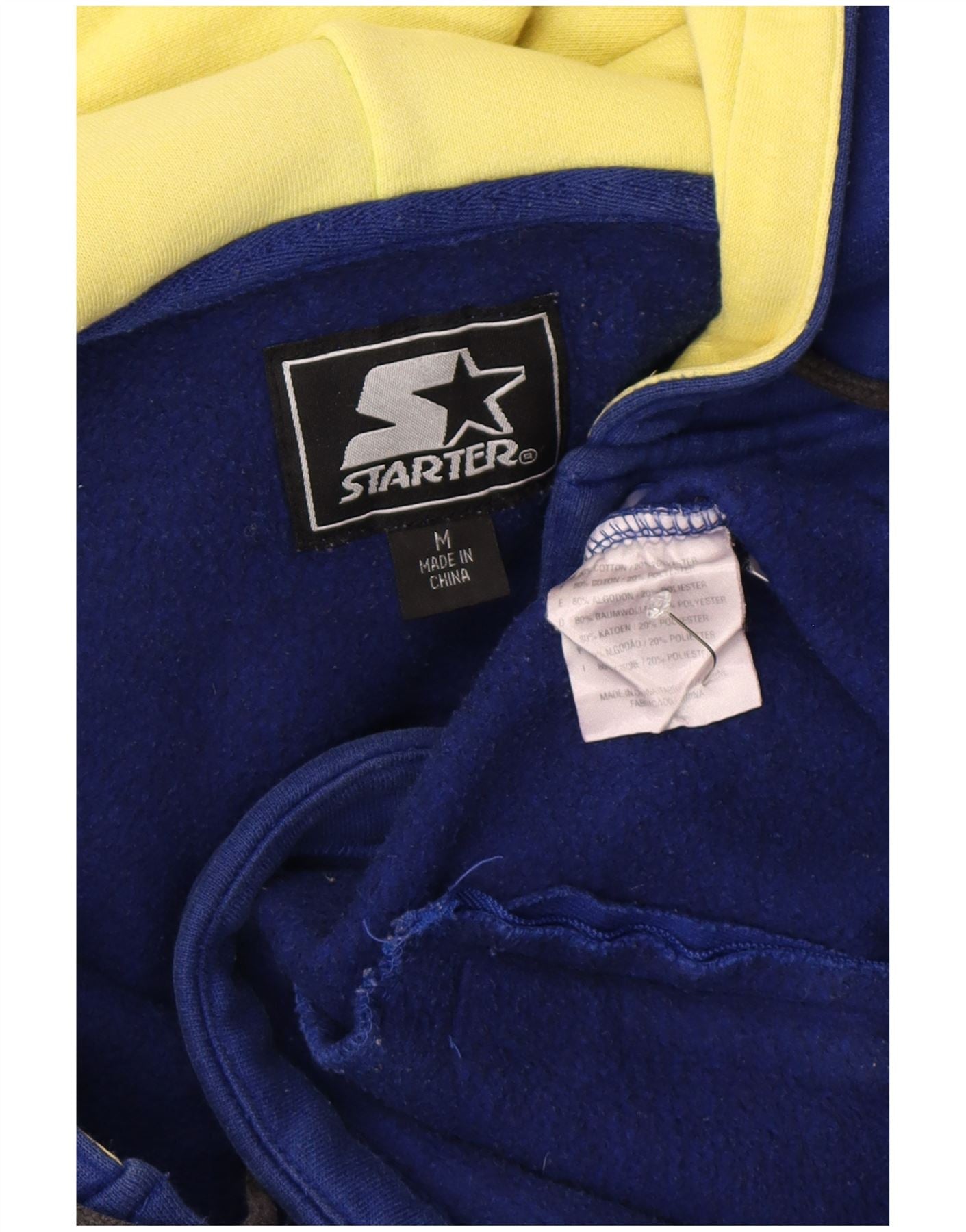 Maglione da uomo con cappuccio e collo con bottoni STARTER, cotone color block blu medio