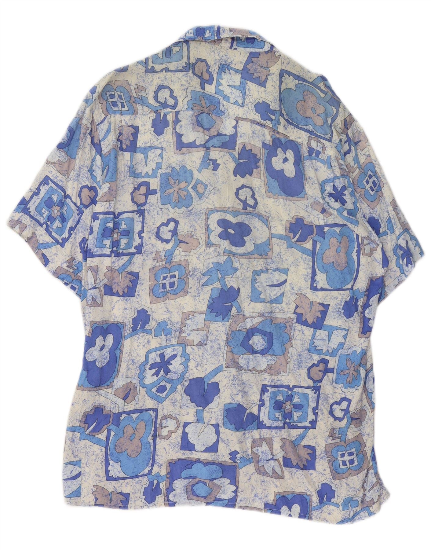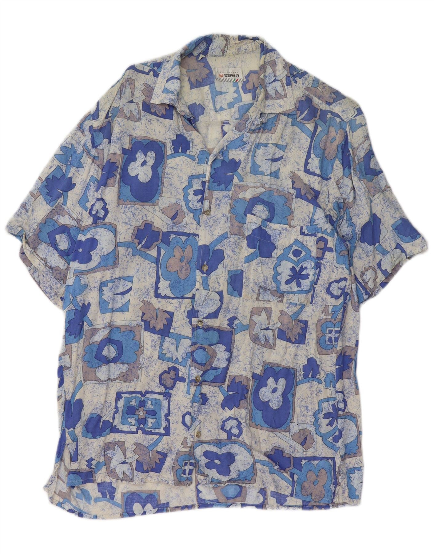 STEFANEL Camicia Uomo Manica Corta Blu Medio Patchwork Viscosa