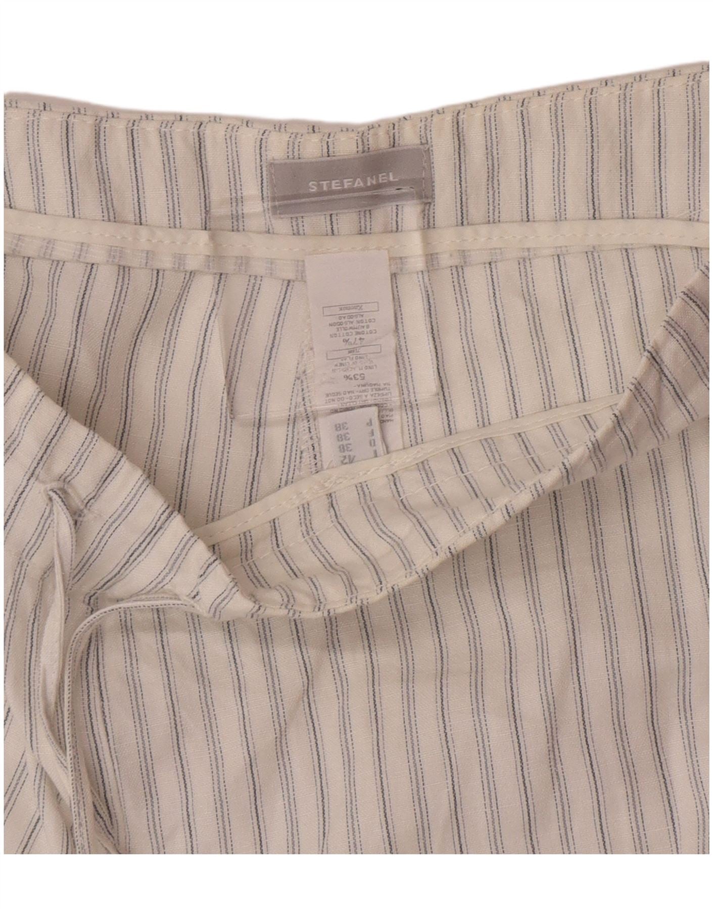 Pantaloni larghi da donna Stefanel IT 42 Medium W30 L32 Lino a righe bianche