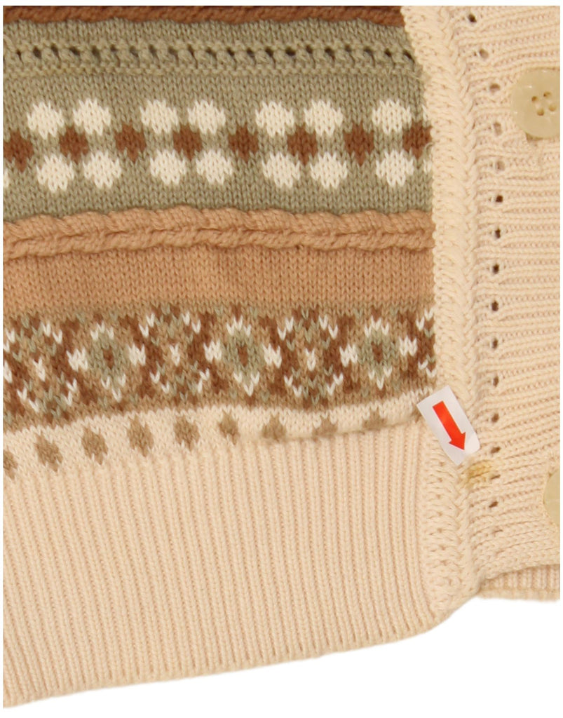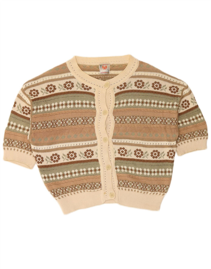 STEFANEL Womens Short Sleeve Cardigan Sweater UK 14 Medium Beige Fair Isle