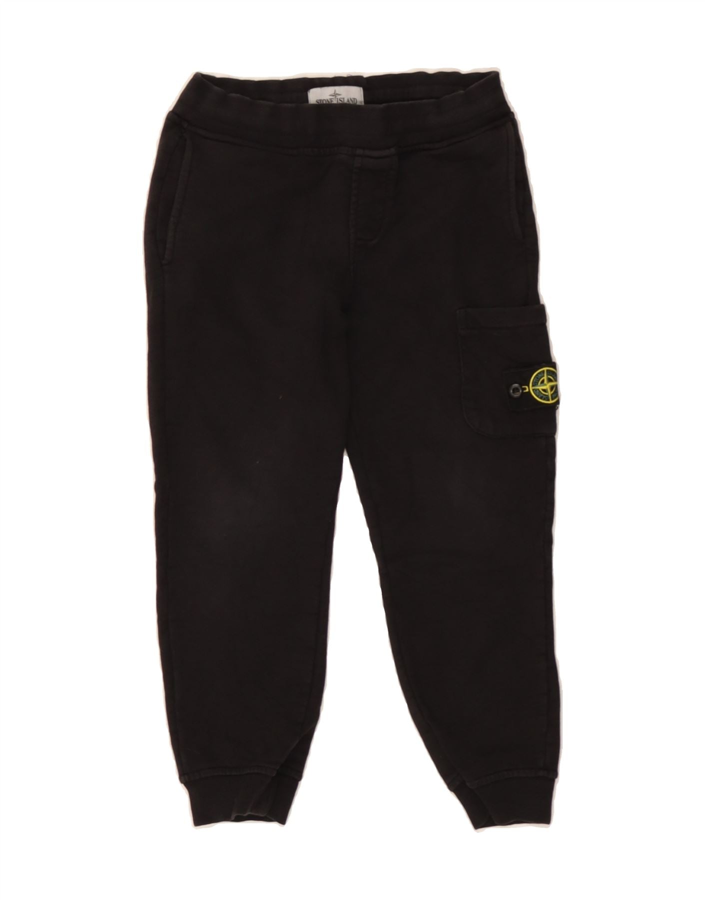 STONE ISLAND Boys Tracksuit Trousers Joggers 8-9 Years Black Cotton