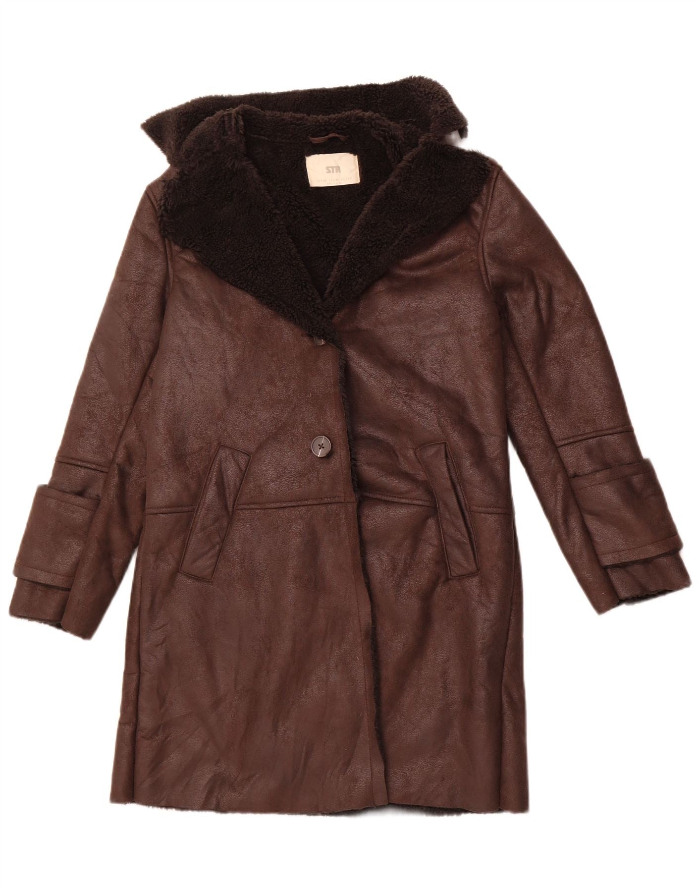 STRADIVARIUS Cappotto oversize in sherpa da donna UK 6 XS Poliestere marrone