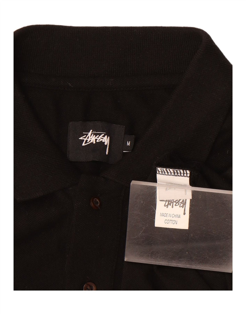 - AI Description: This Stussy men's Polo Shirt is crafted from soft black cotton jersey. It features a classic collared neckline and long sleeves. A button-up placket provides traditional detailing. The regular fit ensures a comfortable, relaxed silhouette. A subtle embroidered logo adds a signature touch. This modern style offers a clean, versatile look suitable for various occasions. It combines classic design with quality material for enduring wear.