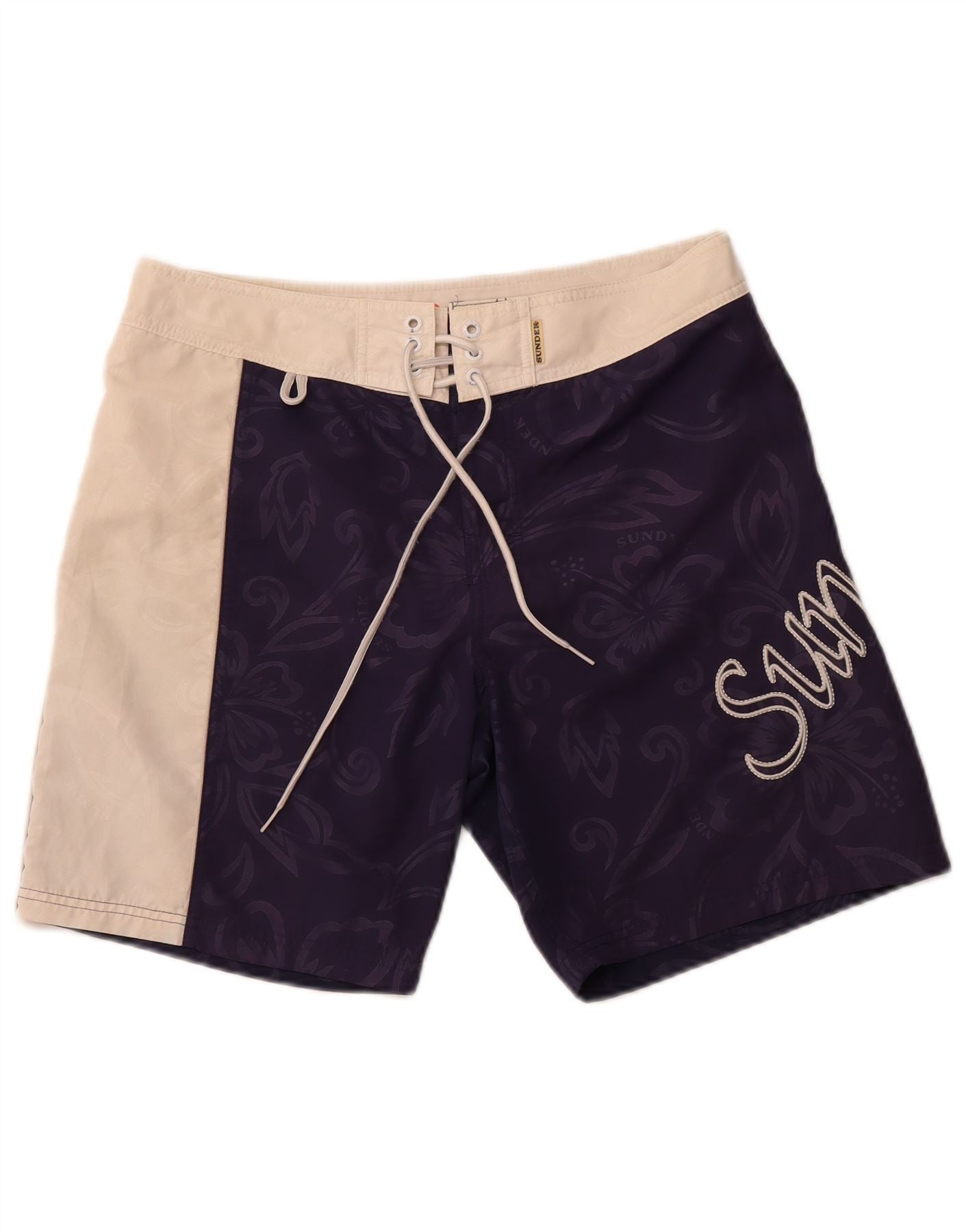 Pantaloncini da bagno grafici da uomo SUNDEK poliestere floreale medio blu navy