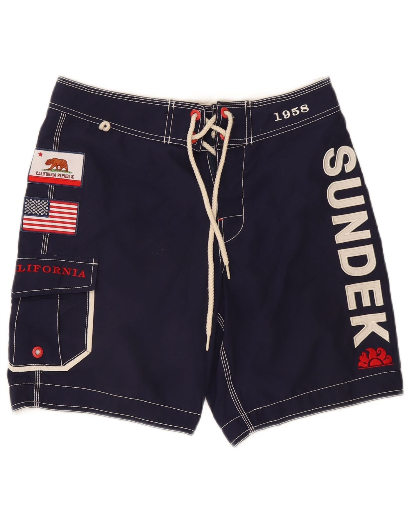 Pantaloncini da bagno grafici da uomo SUNDEK piccoli in poliestere blu navy
