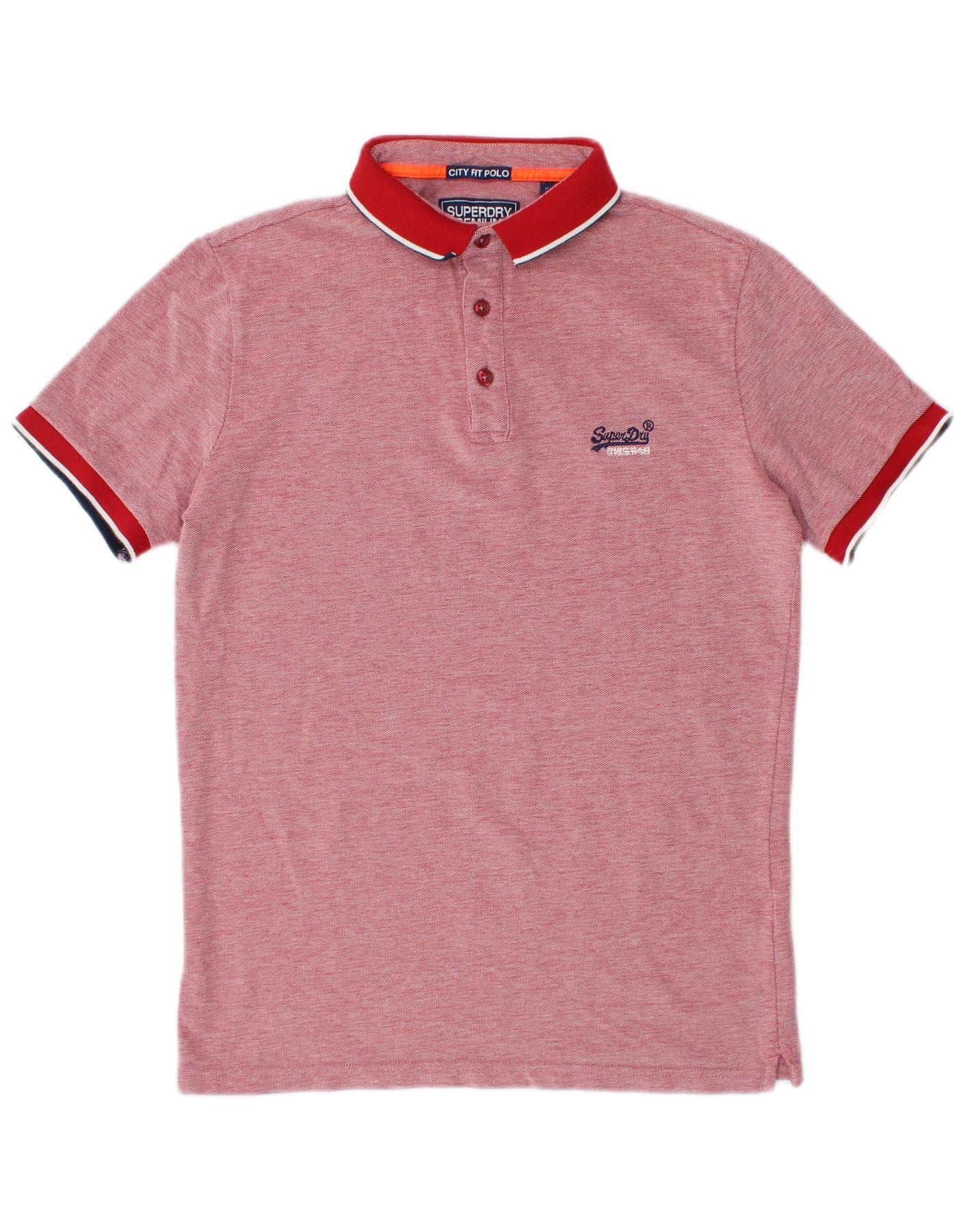 Polo da uomo City Fit SUPERDRY in cotone mélange rosso medio