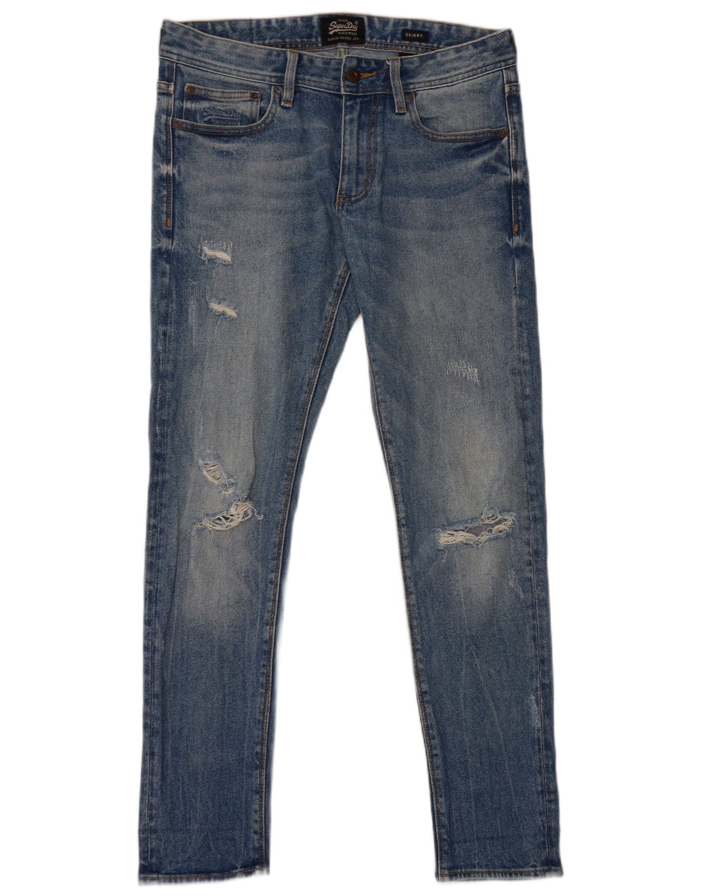 Jeans skinny effetto consumato da uomo SUPERDRY W32 L30 cotone blu