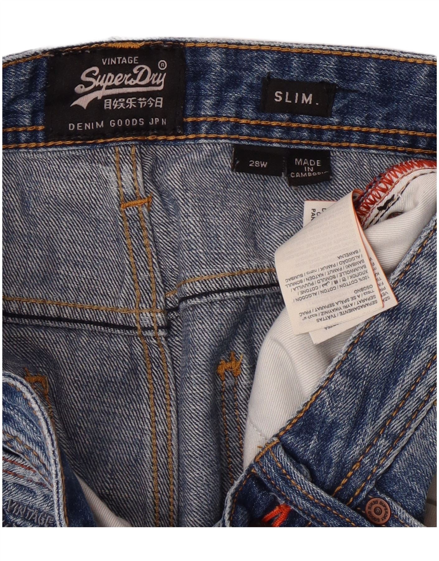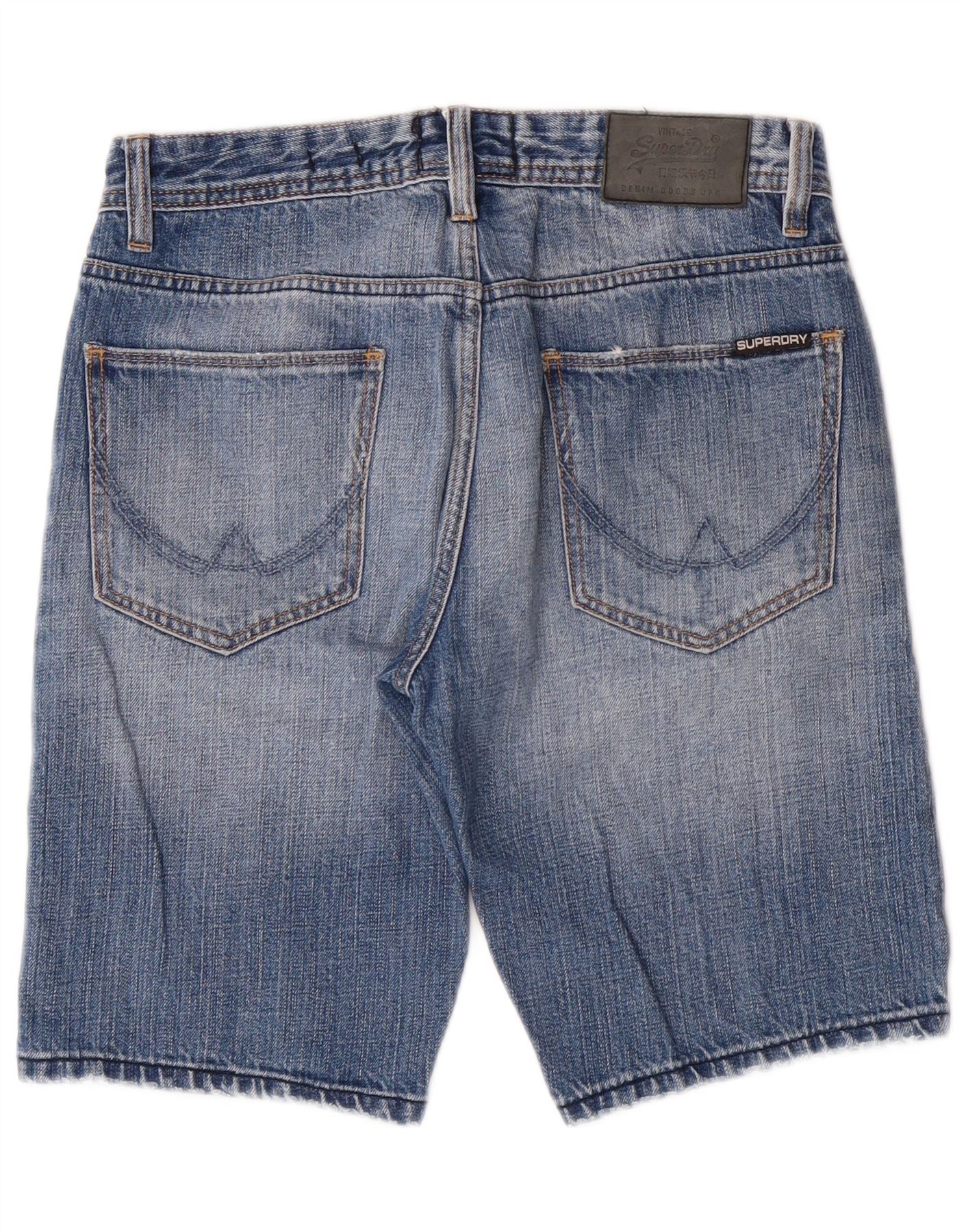 Pantaloncini di jeans slim invecchiati da uomo SUPERDRY W28 cotone blu medio