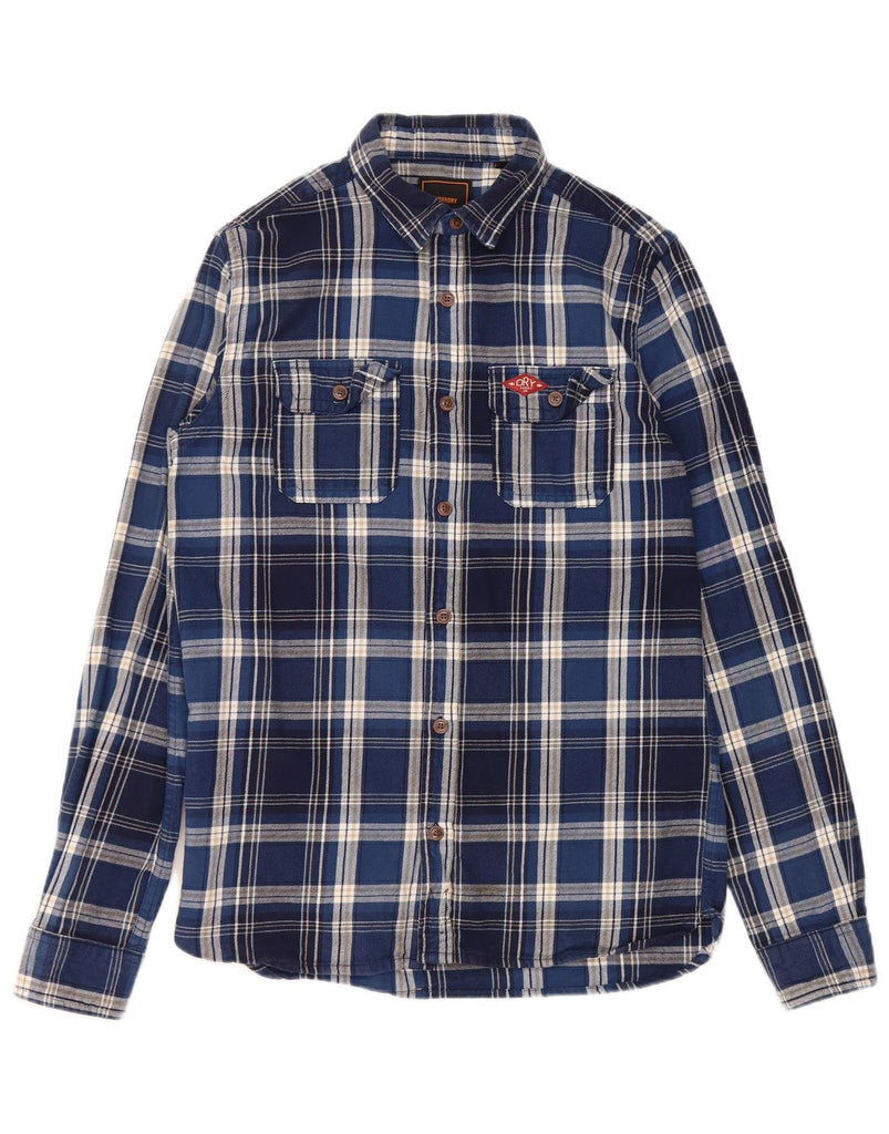 Camicia da uomo in flanella SUPERDRY a quadri piccoli in cotone blu