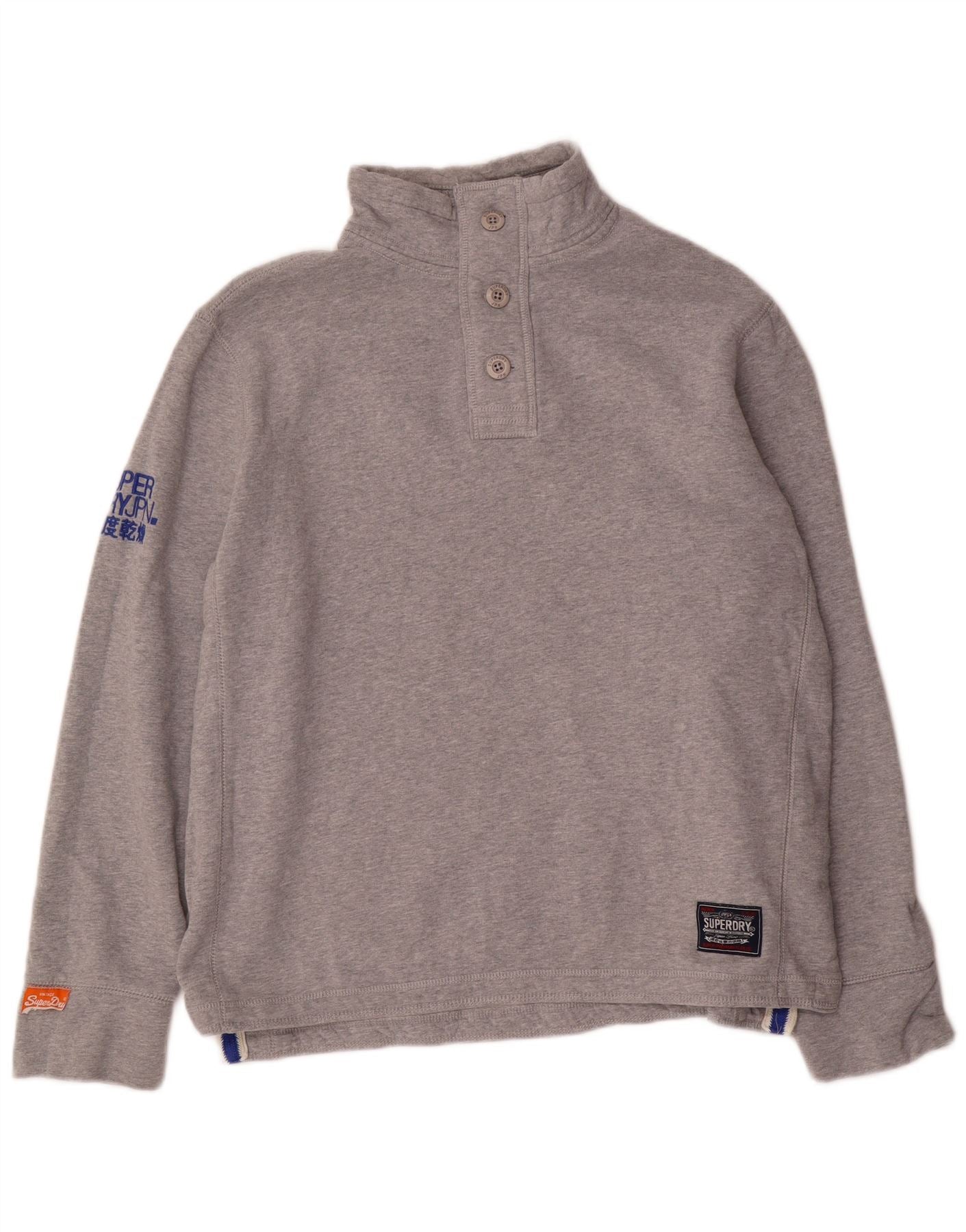 Felpa da uomo con collo con bottoni grafici SUPERDRY 2XL grigio screziato