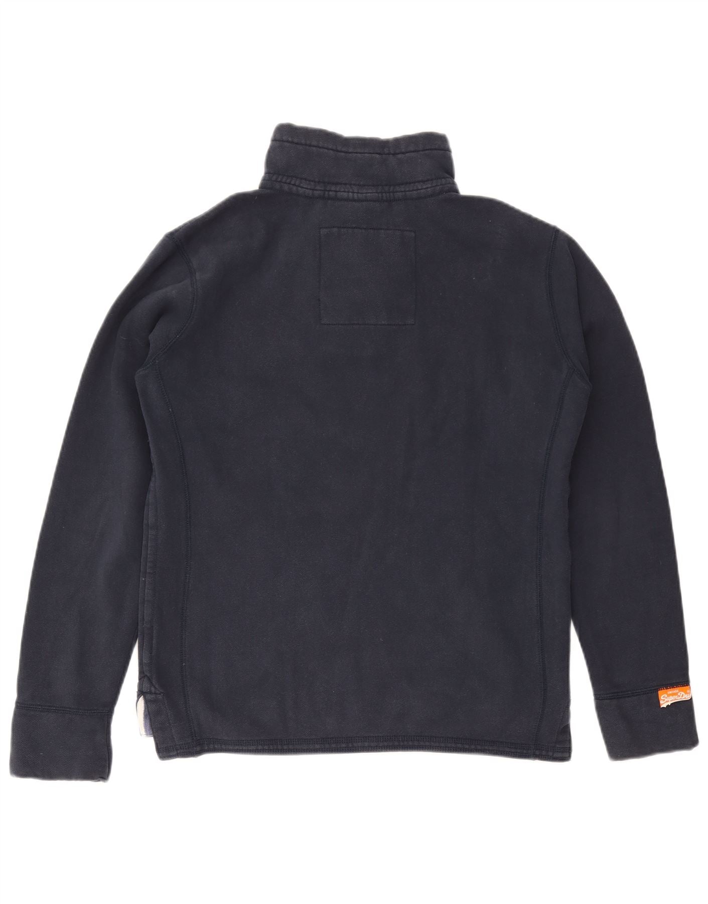 Felpa da uomo con collo con bottoni grafici Superdry, maglione grande, cotone blu navy