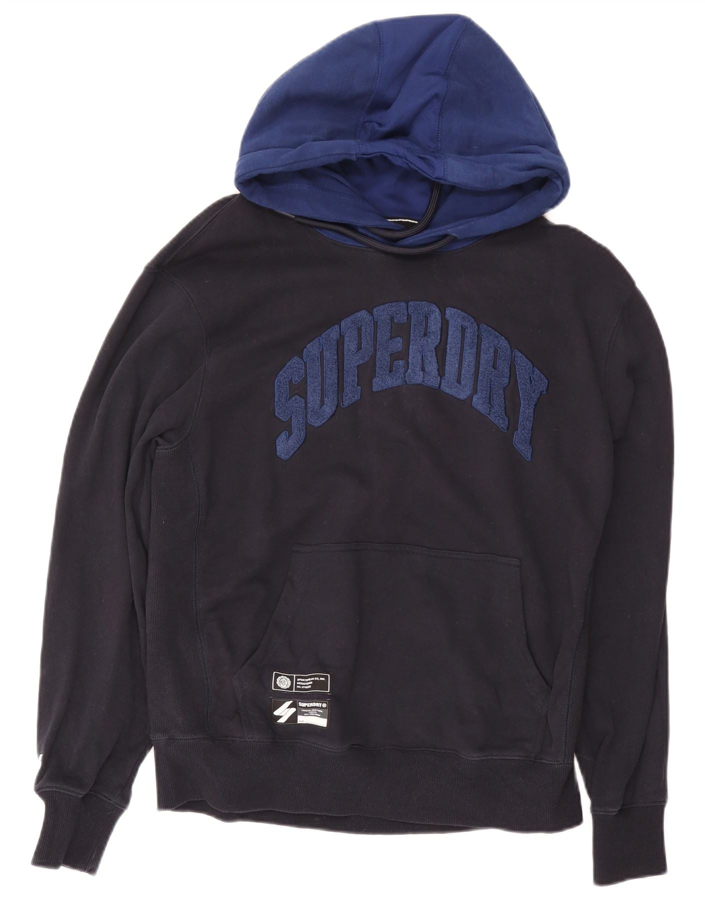 Felpa con cappuccio grafica da uomo Superdry XL in cotone blu navy