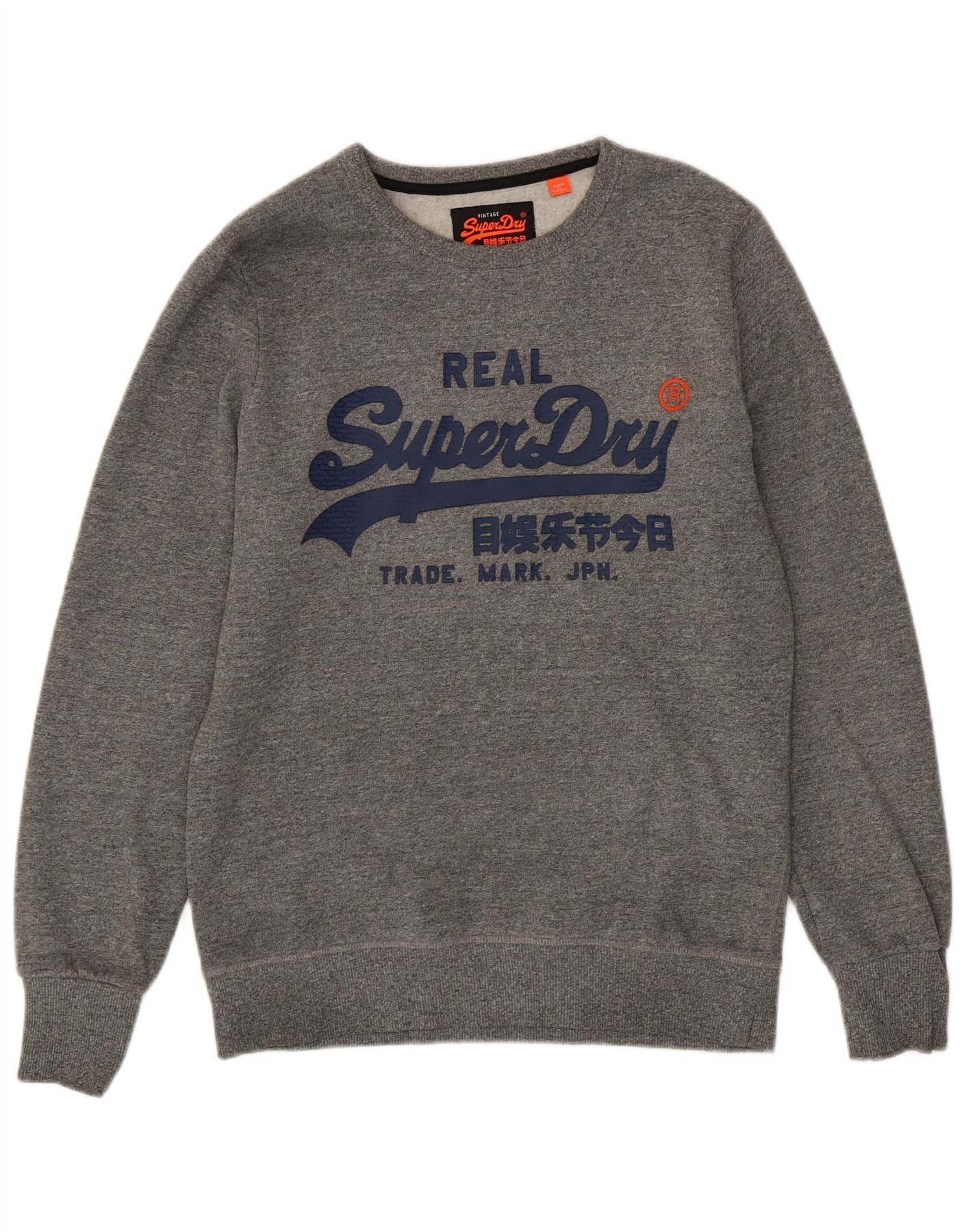 Felpa grafica da uomo SUPERDRY Maglione grande cotone chiazzato grigio