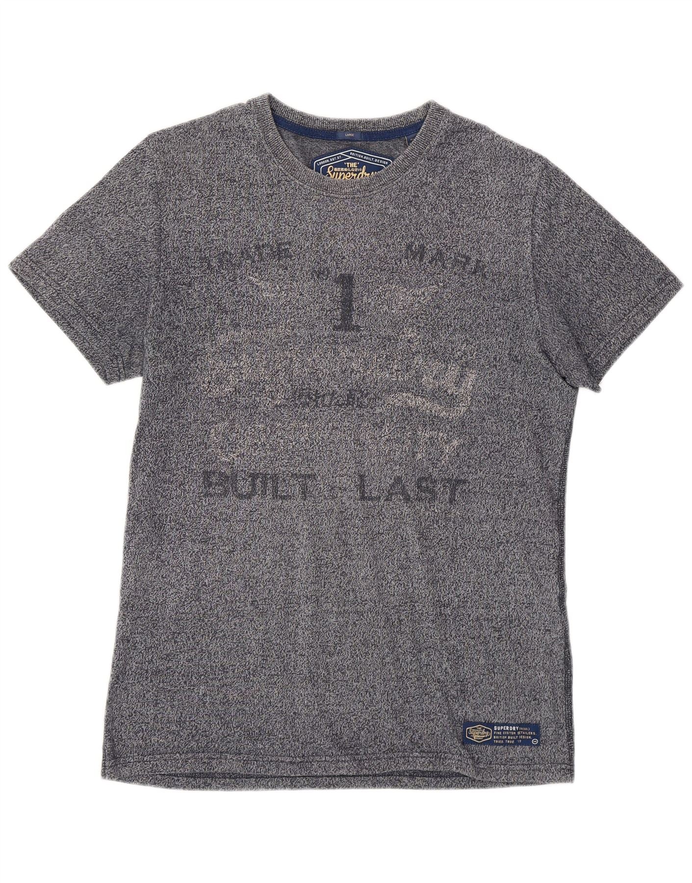 T-shirt grafica da uomo SUPERDRY Top grande in cotone screziato blu navy