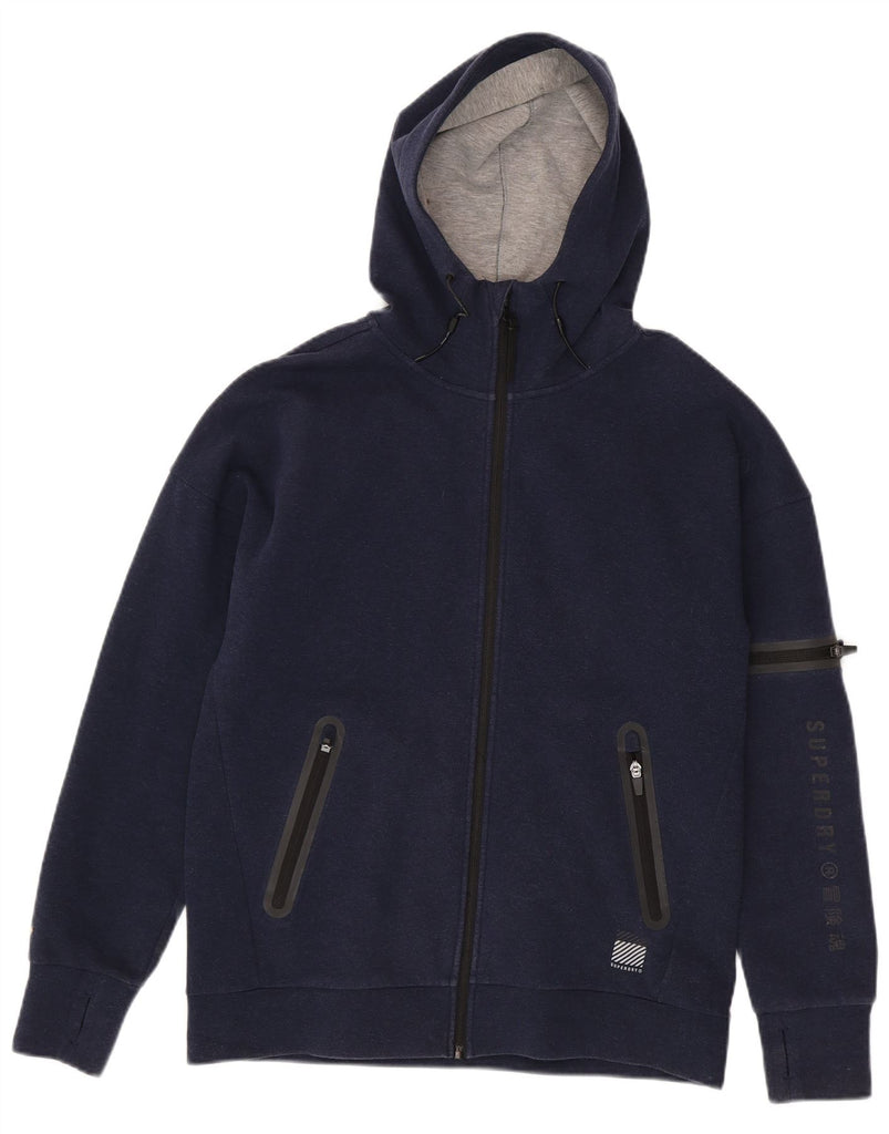 Maglione con cappuccio e zip grafica da uomo SUPERDRY in cotone blu navy medio