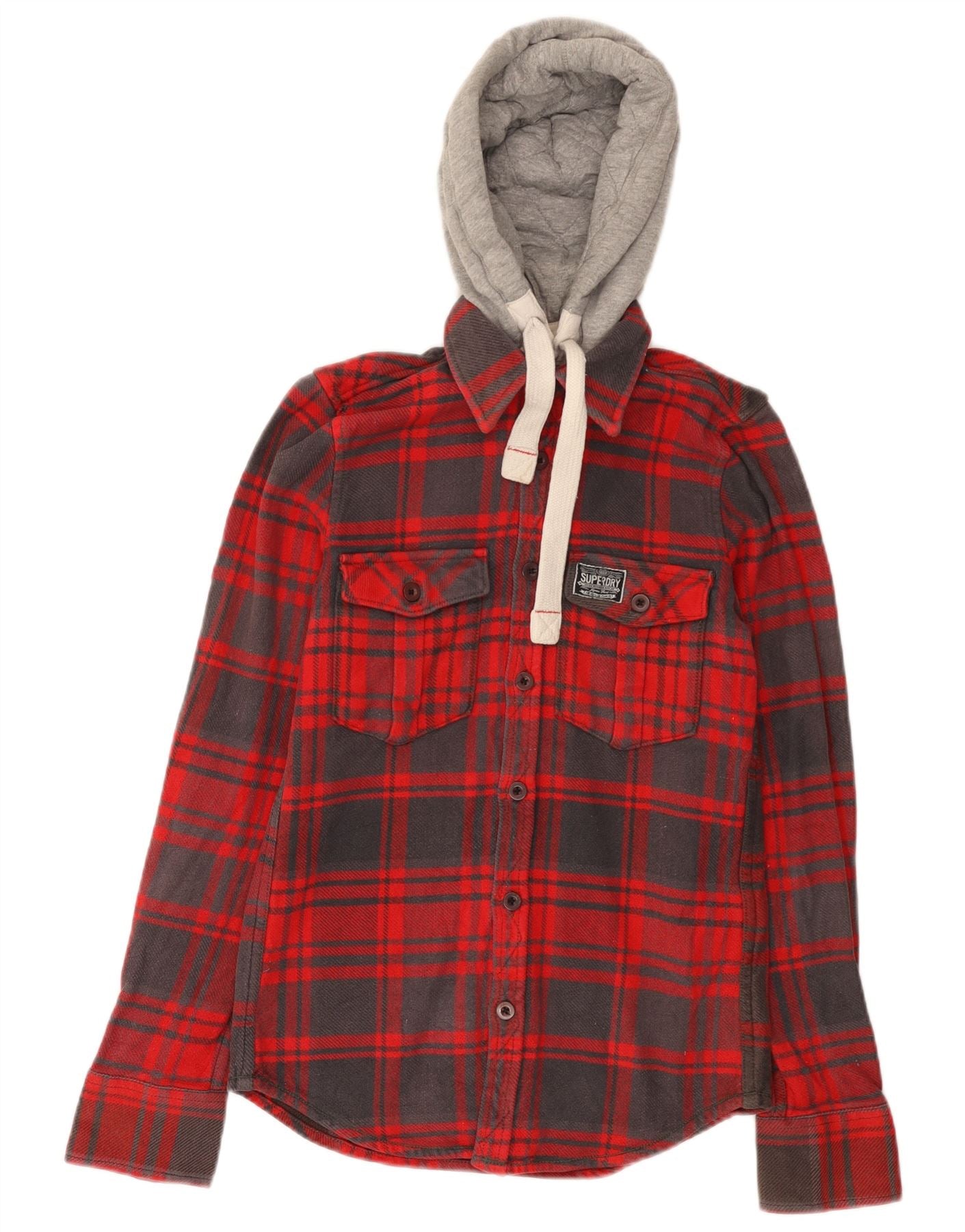 Camicia da uomo in flanella con cappuccio SUPERDRY, piccolo cotone scozzese rosso