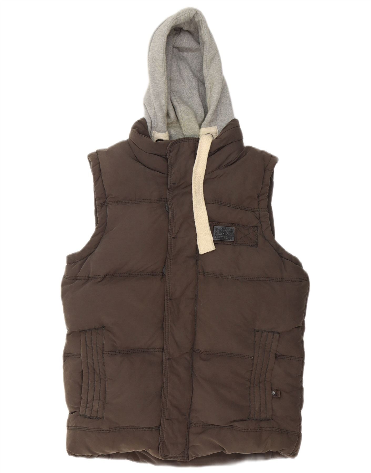 SUPERDRY Mens Hooded Padded Gilet UK 40 Large Grey Cotton