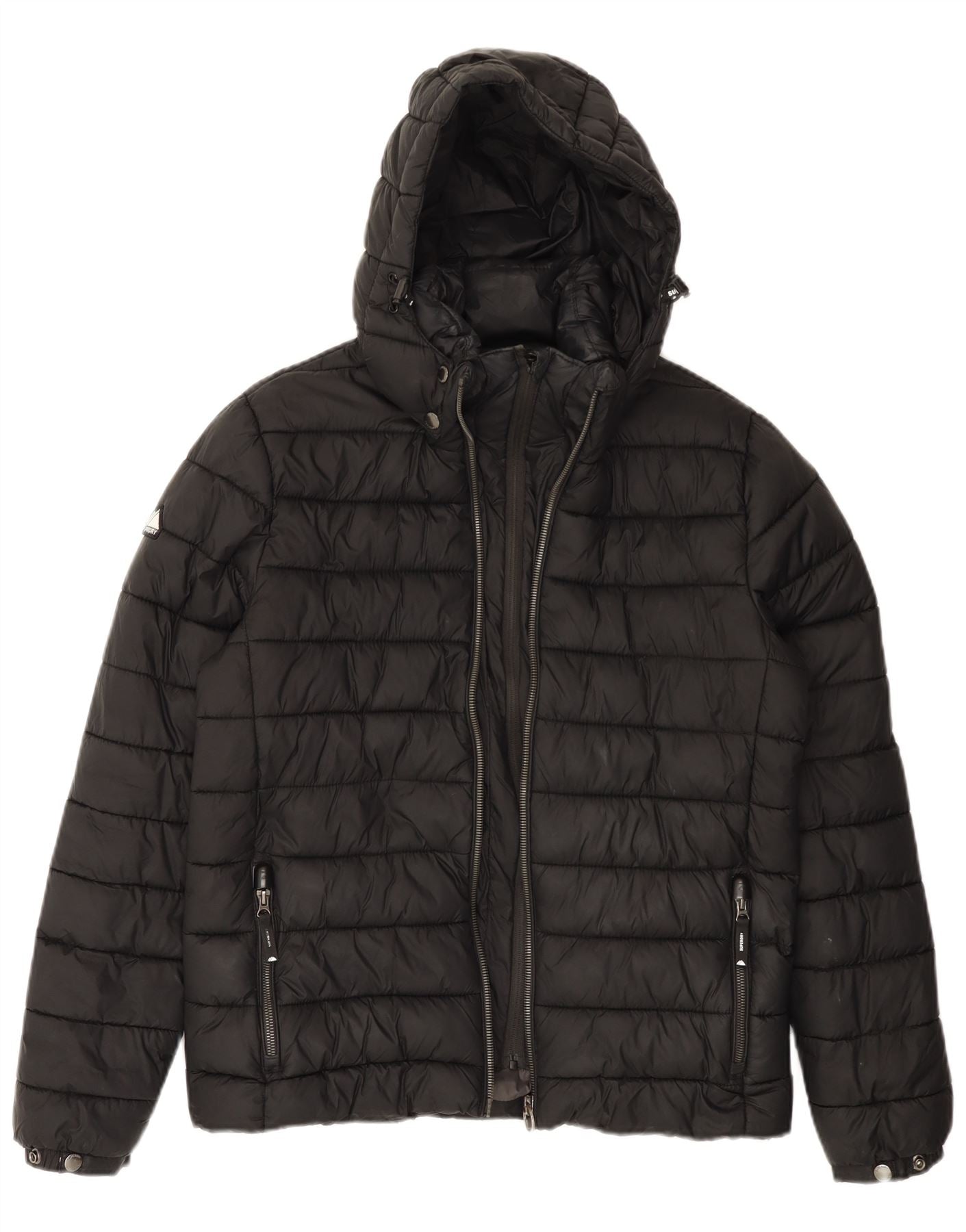 Giacca imbottita con cappuccio da uomo Superdry UK 38 nylon nero medio